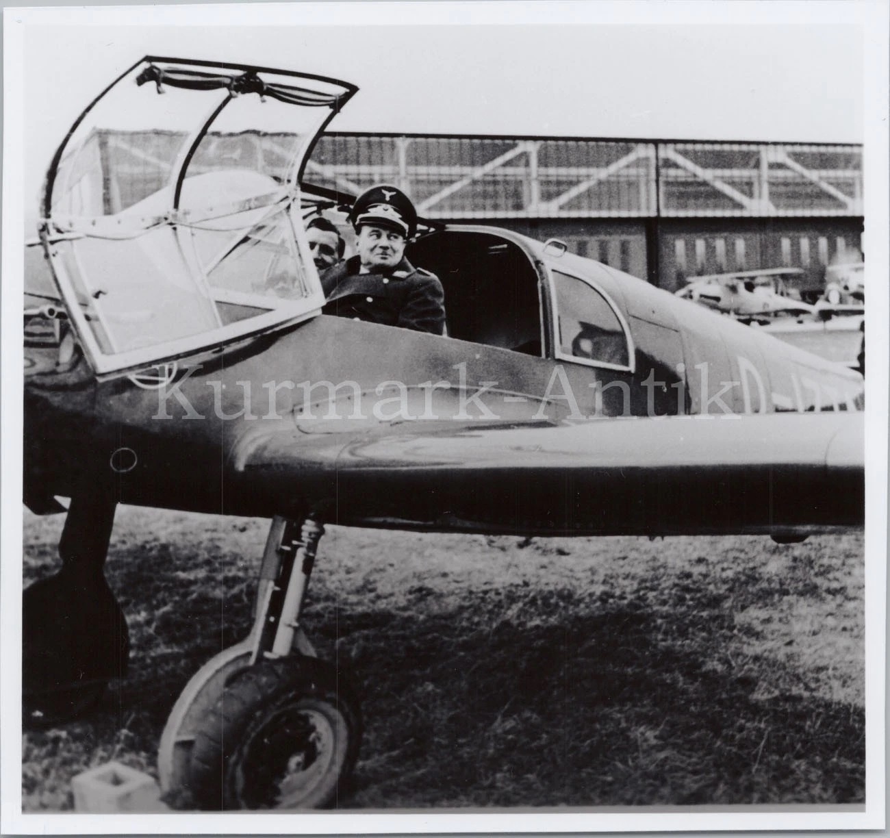 Das Foto zeigt die Fliegerin Hanna Reitsch mit einem General der Luftwaffe auf dem Flugplatz Tempelhof im Jahre 1937.