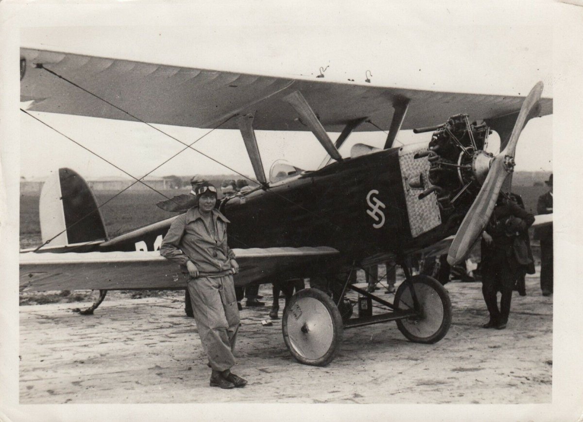 Kunstflieger Pilot Ernst Udet mit Curtiss Hawk Flugzeug am Flugplatz Frankfurt am Main, ca. 1930'er Jahre