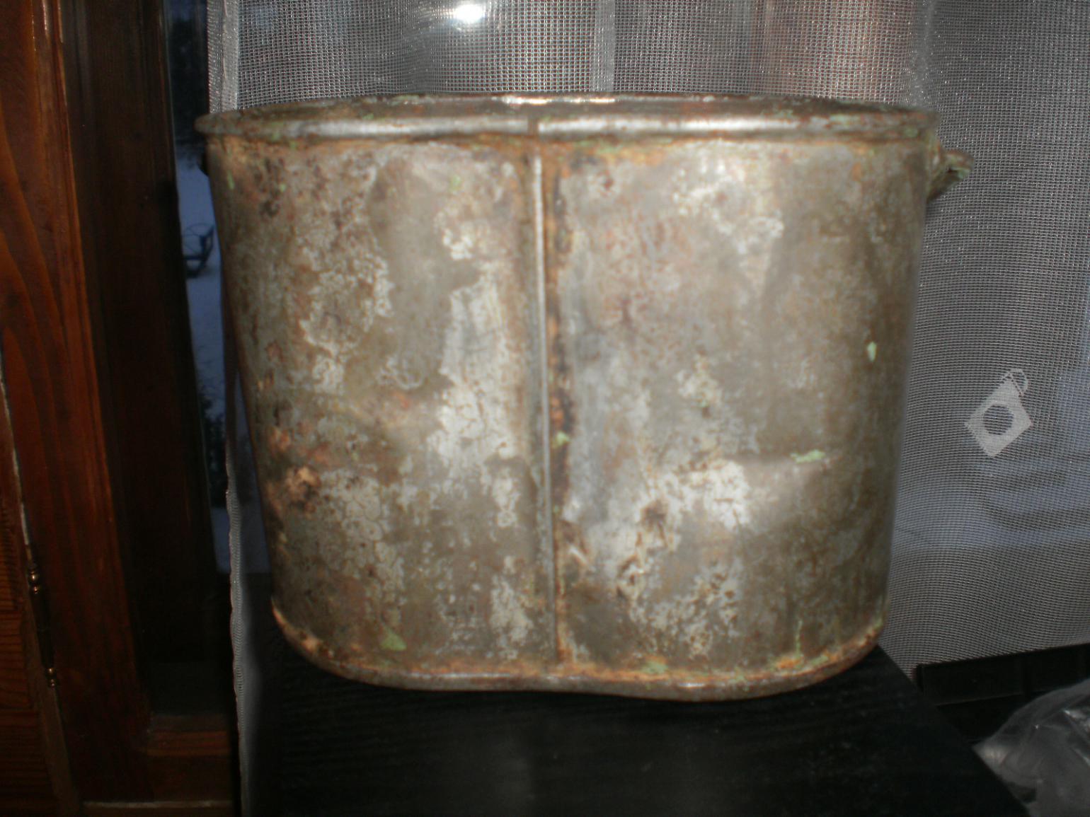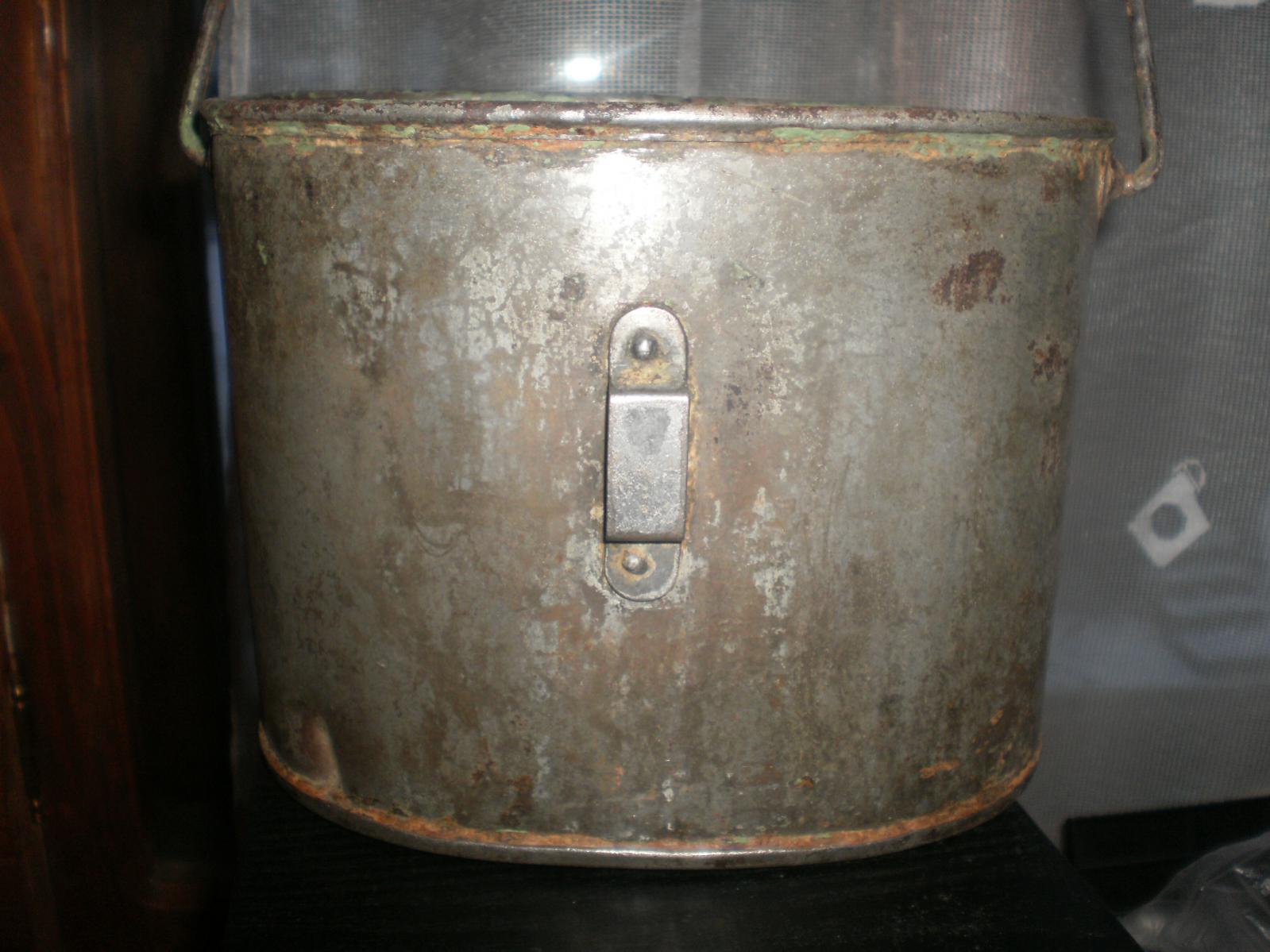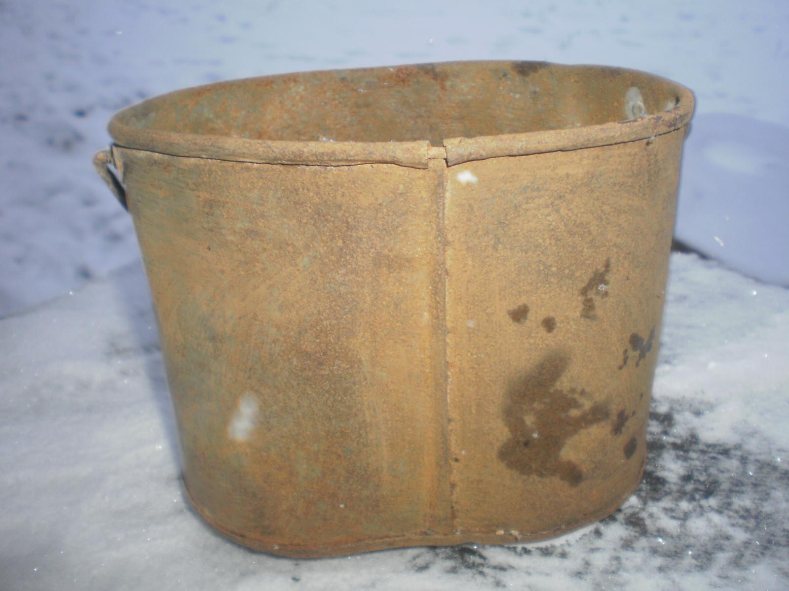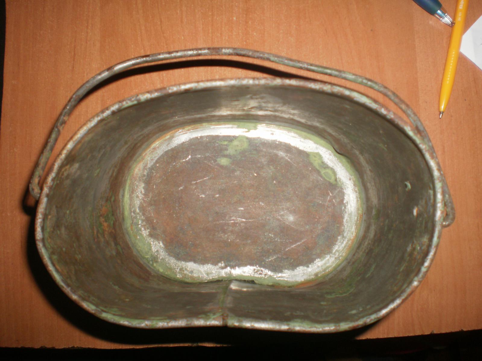 Вот такие железные котелки,сверху и внутри были или никелированые или оцинкованые.Один из них обсуждался в разделе Находки и был атрибутирован,как эрзац-котелок РИА