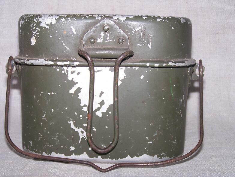 Продаётся котелок принадлежавший эстонскому легионеру из 20-ой гренадёрской дивизии СС. На котелке процарапаны инициалы солдата. Котелок найден на чердаке, на хуторе. Сам котёл итальянской модели. Такие - закупила эстонская армия, накануне Советской аннексии, но не успела переворужиться. так они и пролежали на складах до 43 года. Когда начали формировать 20 легион СС, то снабдили солдат этими котелками. Они повсеместно встречаются на позициях эстонских легионеров, эти и ещё другой разновидности, большей ёмкости. Котелок в отличном состоянии, только краска местами ободрана. Стоит он 50 евро + отсылка из Эстонии 10 евро