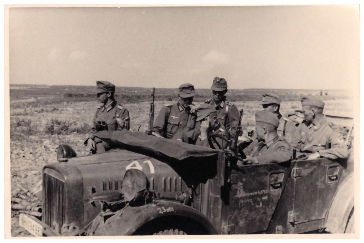 На снимках с 4-го по шестой - тяжёлый стандартизованный автомобиль с одной интересной деталью, третьей дверцей.Вероятно это творчество полевых мастерских.