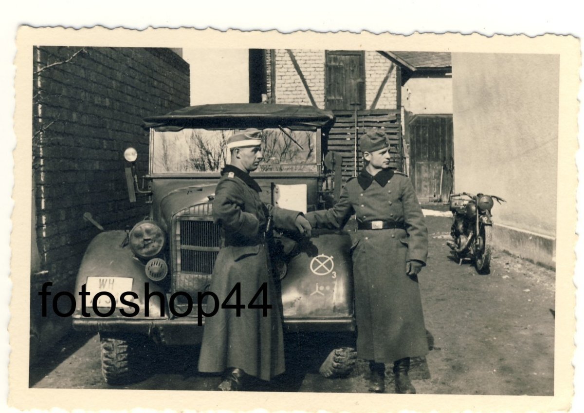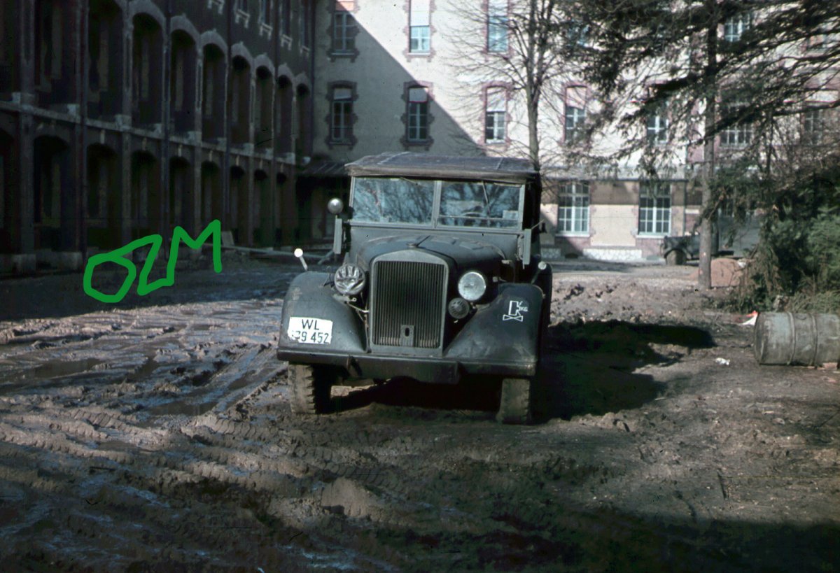 1,2.M.gl.Einheits-Pkw в цвете.Автомобиль принадлежит подразделению связистов Люфтваффе.Снимок подписан : Шартре (Chartres), Франция, зима 1940-41 годов. 3.Автопарк Вермахта.В среднем ряду - первая,третья и последняя машины, а так же авто стоящее у стенки - M.gl.Einheits-Pkw.Два первых автомобиля в правом ряду - le.Einheits.Pkw. 4-6.Трёхдверная машина связи Kfz.2 le.Einheits.Pkw из танковой группы Гудериана.На 4-м снимке - автомобиль с фашинами, закреплёнными на бампере.На следующем фото хорошо видны полукруглые ленты для их крепления и дополнительный кронштейн для запасной канистры в задней части машины.Насколько мне известно, данные приспособления не являлись стандартными.Автомобиль уже успел побывать в боях о чём говорит отверстие в правом борту на шестом фото. 7.M.gl.Einheits-Pkw на прокладке линии связи.Фото подписано : Румыния, апрель 1941 года.