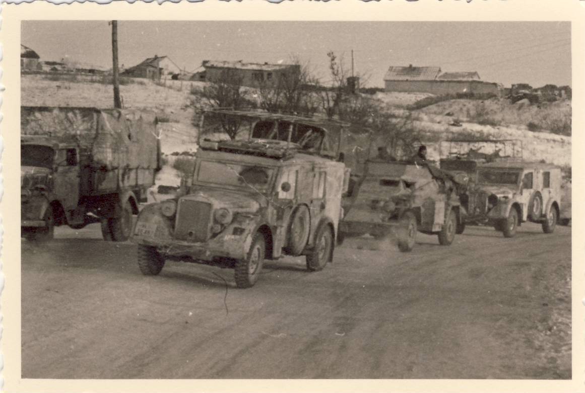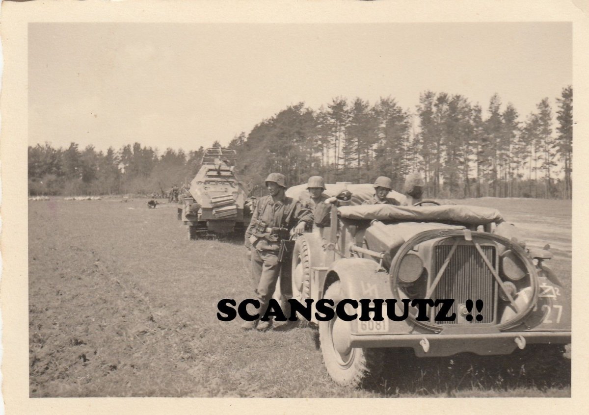 1-3.Офицер и два унтера из 281-й охранной дивизии испытывают проходимость M.gl.Einheits-Pkw. 4.Le.gl.Einheits.Pkw со всеми управляемыми колёсами (т.е. эта модель была выпущена до 1940 года) из неустановленного подразделения Вермахта. 5.Le.gl.Einheits.Pkw с водителем в гражданской одежде, что смотрится странно,так как автомобиль выпускался исключительно для армии. 6.S.gl.Einheits-Pkw в версии самоходной зенитной установки Kfz.70 вооружённый 20-мм пушкой Flak 30.