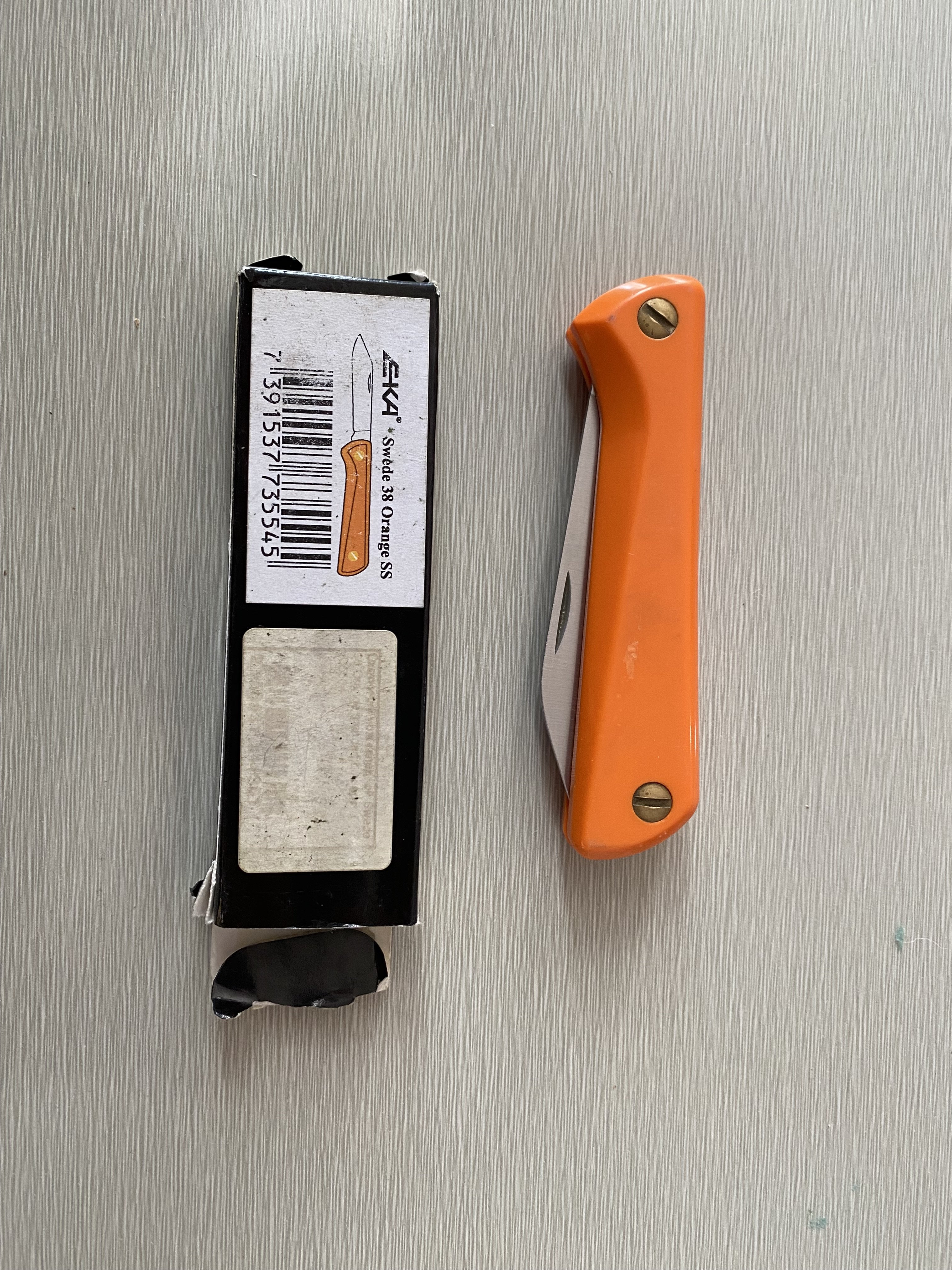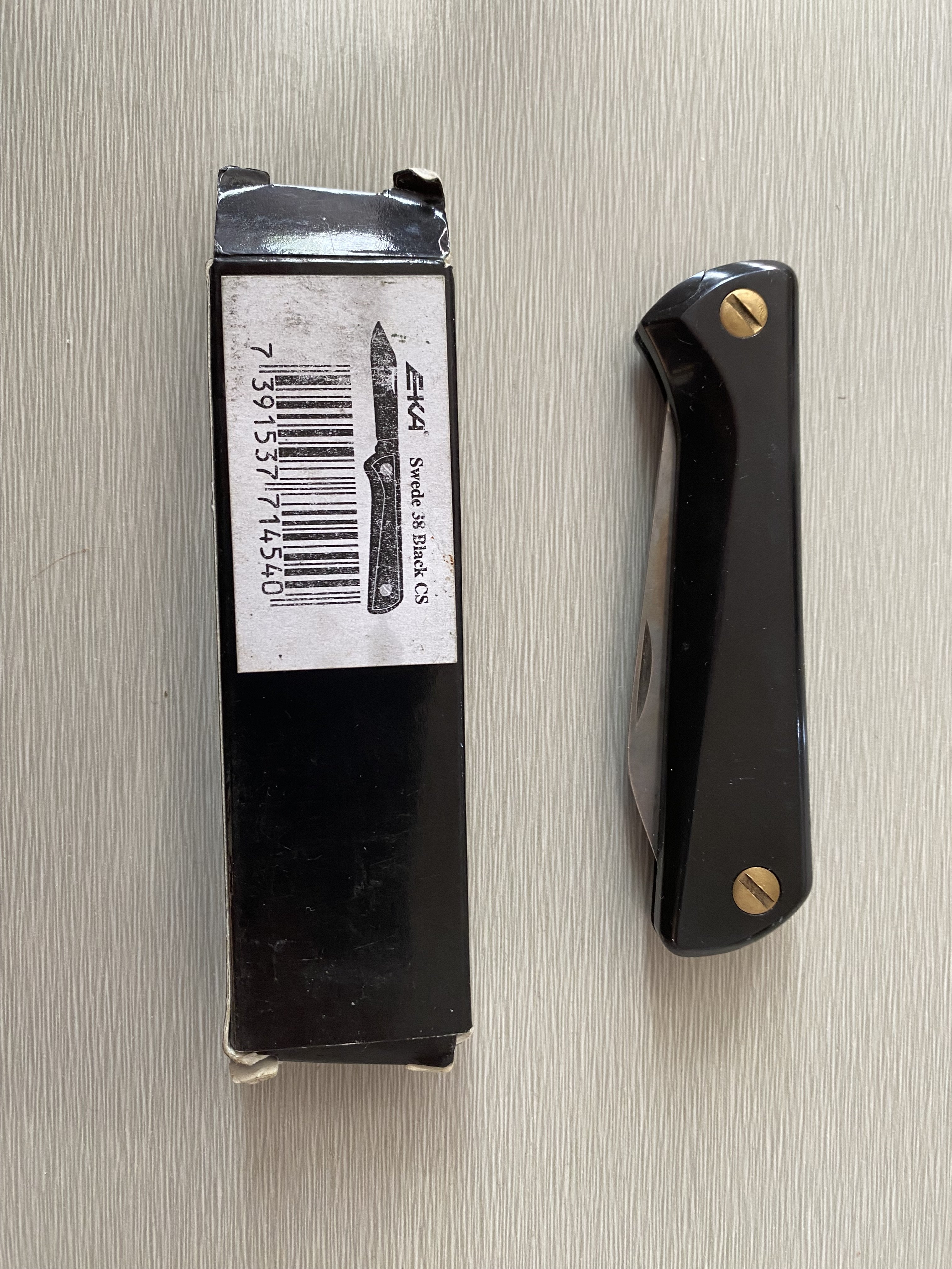 Продам 2 ножа EKA SWEDE 38 Стан Б.В. Заточені. Ціна 1300 грн за кожен. Оплата на карту. Доставка на покупцеві. 1) Модель -Swede 38 Orange Виробник -Eka/Швеція Вага-68 г Довжина клинка -79 мм Марка сталі - 12C27 Sandvik нержавіюча Твердість -58 HRC Тип клинка -Drop Point Товщина клинка -2.8 мм 2) Модель -Swede 38 Black Виробник -Eka/Швеція Вага-68 г Довжина клинка -79 мм Марка сталі - W75 вуглецева Твердість -58 HRC Тип клинка -Drop Point Товщина клинка -2.8 мм