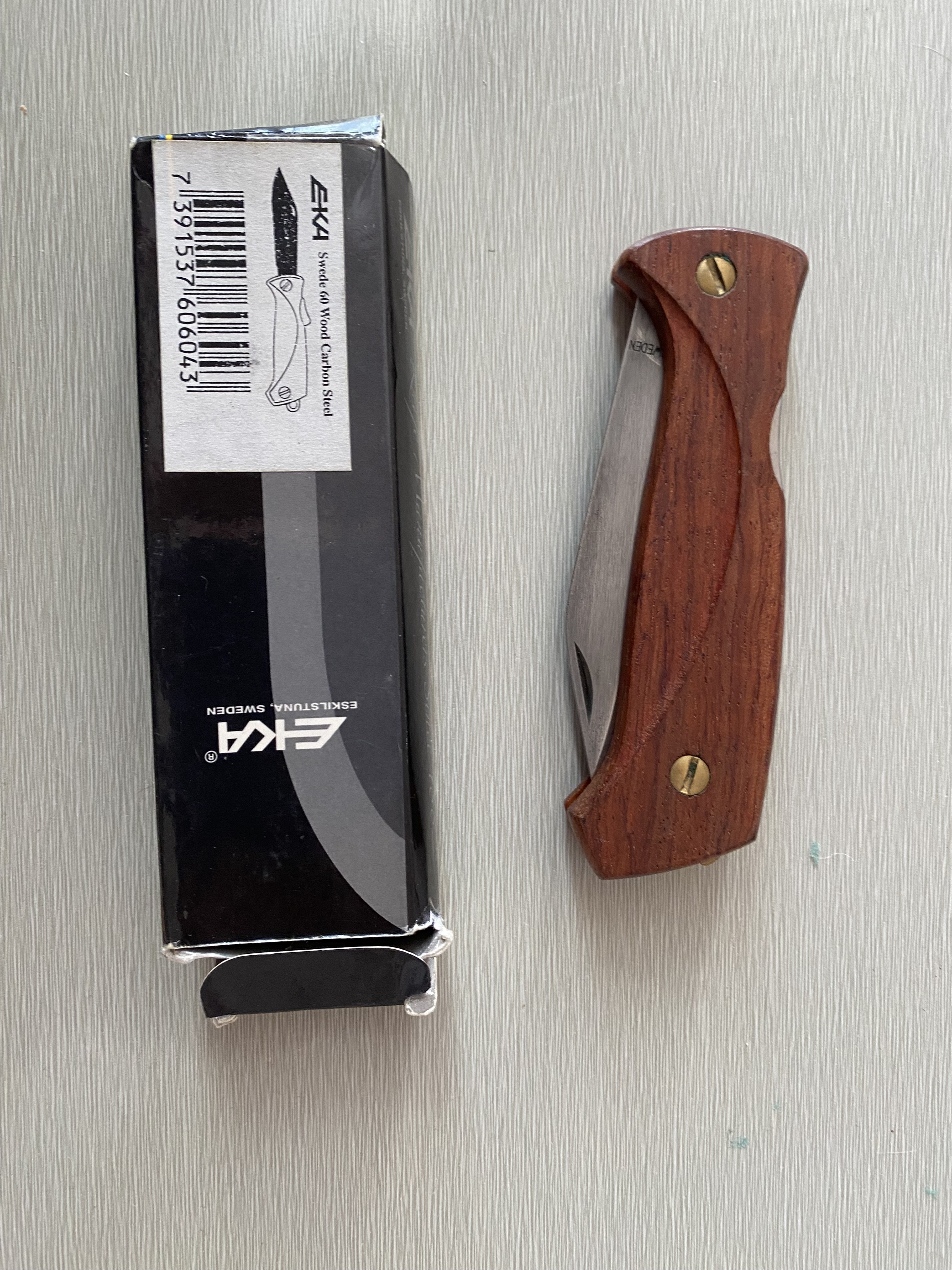Продам ніж EKA SWEDE 60 Стан Б.В. Заточений. Ціна 4200 грн. Оплата на карту. Доставка на покупцеві Довжина клинка - 93 мм Довжина руків*я - 114 мм Товщина клинка - 3 мм Сталь - вуглецева Руків*я - деревина бубінга Комплектація - EKA Swede 60, оригинальна коробка.