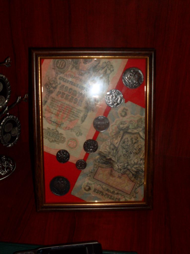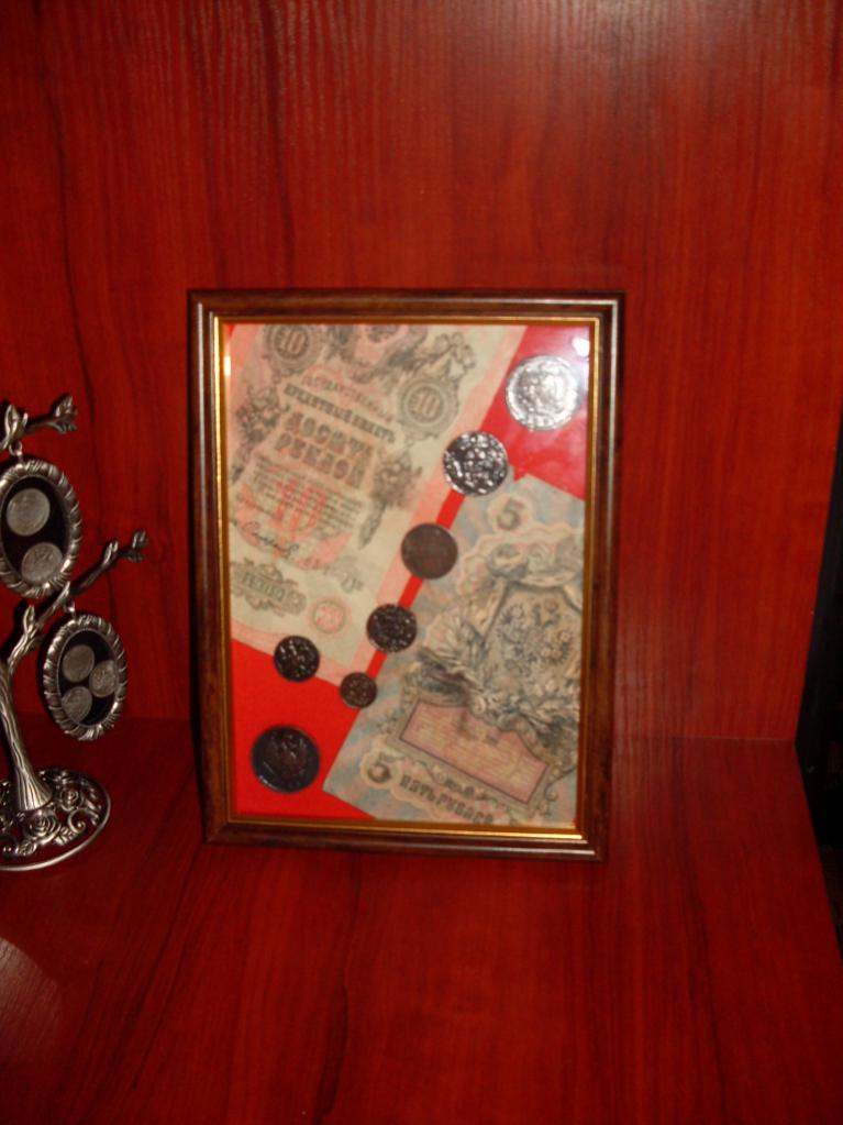 Рамка-экспозиция с царизмом. Может как украсить Вам стену так и послужить отличным подарком. Монеты вскрыты лаком, поэтому бликуют на фото, но в живую смотрится отлично и очень рельефно под лаком. Размеры: 15см на 21см 1. Сохранность: По фото 2. Материал:разный 3. Местонахождение лота: Украина 4. Оплата: Карта ПриватБанка 5. Пересыл: По Украине, за счёт покупателя,Автолюксом, Ин-Таймом, Новой почтой, по тарифу. 6. Цена 50 грн + доставка
