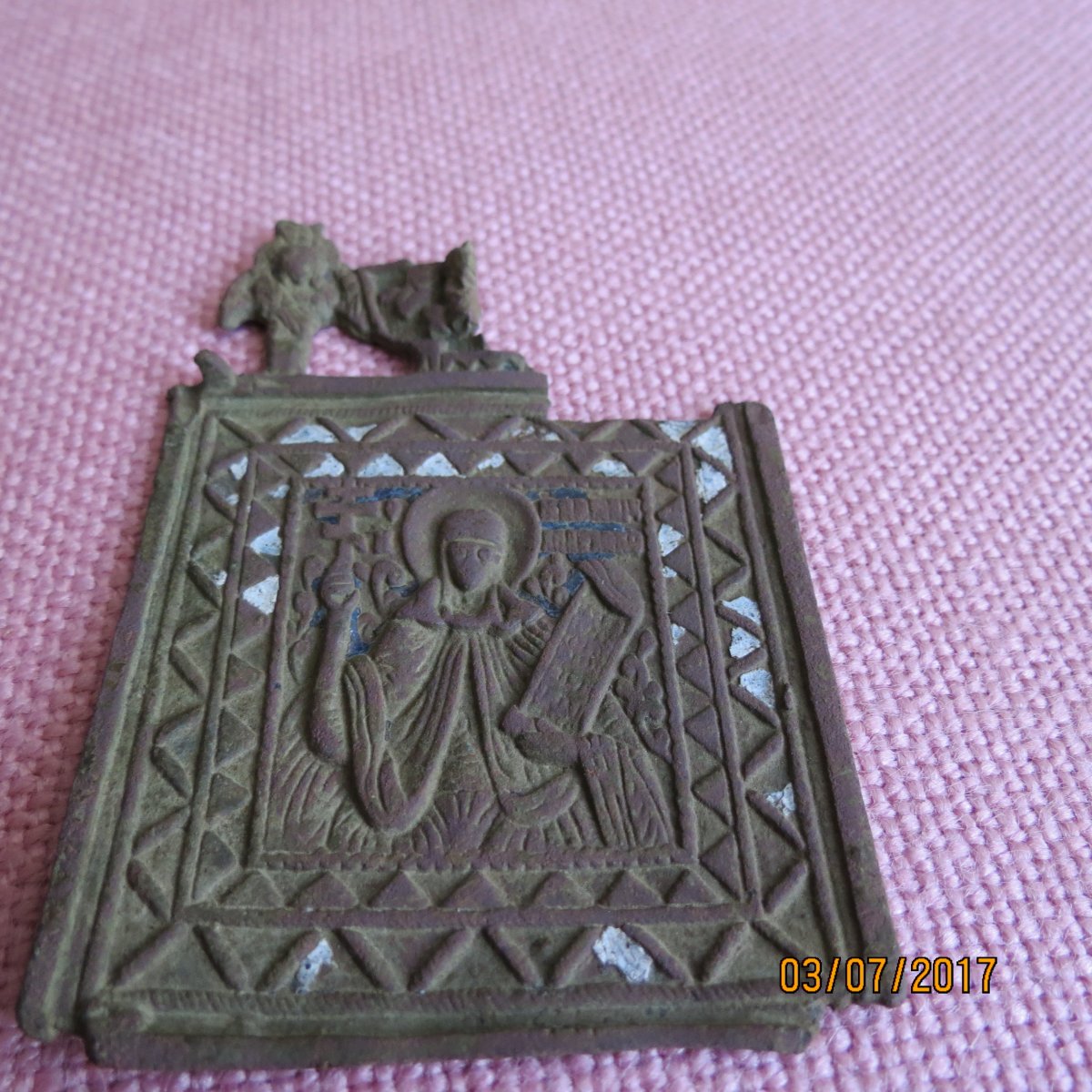 Мої вітання!! Допоможіть визначити знахідку, цікавить період, вид ікони, цінність в такому стані. Розмір : 53Х55 мм. Дякую!
