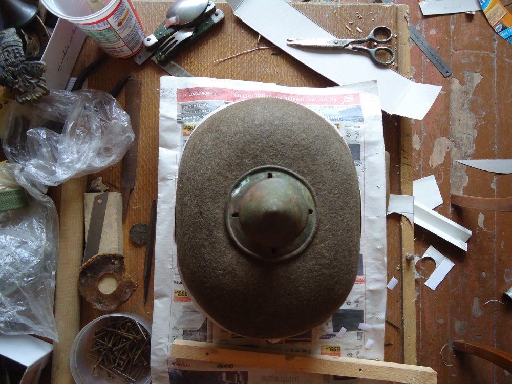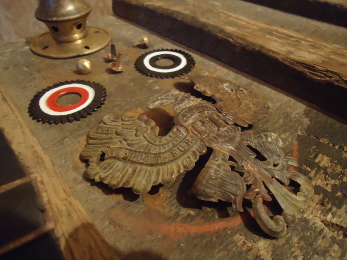Капелюх дістався "мілкий" тому козирьки будуть шкіряні,фурнітуру знайшов оригінальну і майже всю у одного хорошого камрада,кокарду(звичайно ж без скіпетра і держави)буду паяти,а от ландкокарди доведеться або купувати копії,або робити самому...