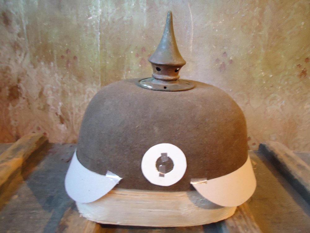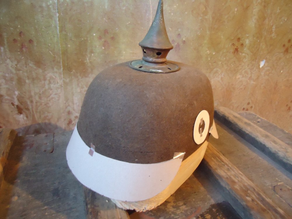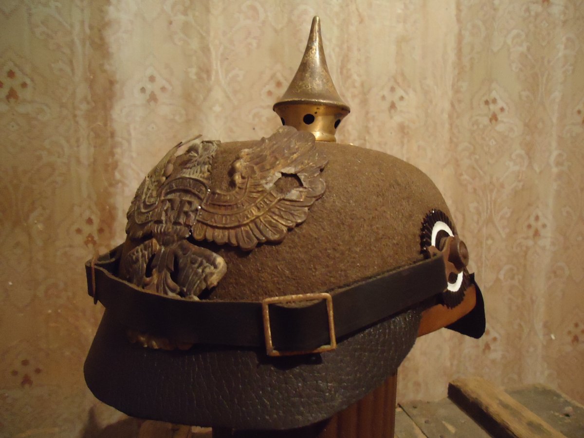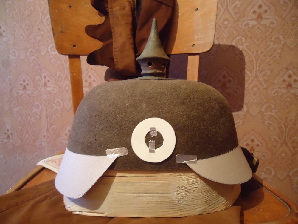 По формі наче нормальний, тільки козирьки незрозуміло де передній, а де задній. Треба підправити їх форму, передній був округліший за задній. Ще потрібні шкіряні деталі по боках, як на шкіряних пікелях. Ось тут є все, що вам потрбно. http://www.reenactor.net/ww1/morsels/gonzales/pickelh.html І фурнітуру почистіть.
