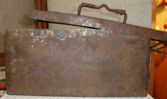 Железо. Состояние - нормальное. На ручках - остатки кожи. По бокам под ручками клейма: Patr.Kast. 41 f.M.G. Под рукояткой сверху - brc, под ним - 42. Цена - 25 у.е.