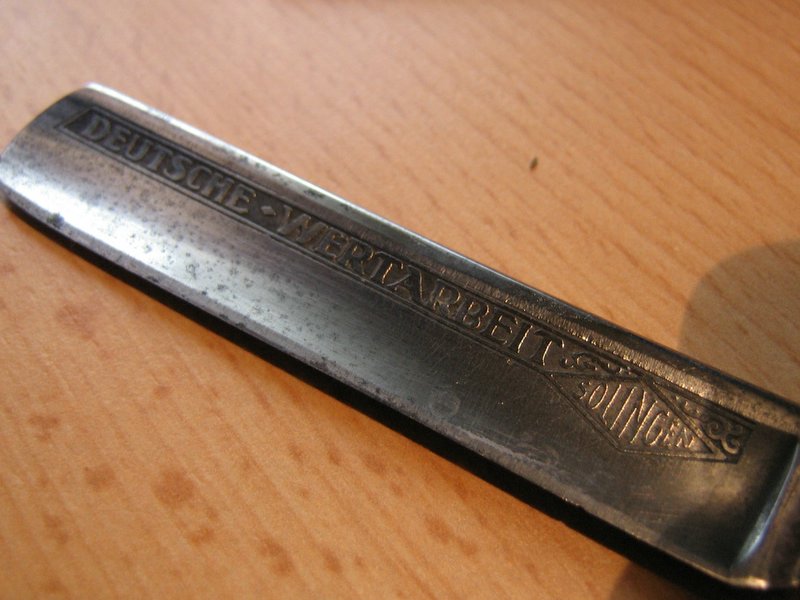 Ответ: Еще "пафосная" парочка бритв... Этот золинген похож на правду. Можно корень клинка и травление покрупнее?