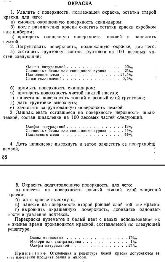 Вот нашел в Наставлении по ремонту Максима такой текст. Приводится состав грунтовки и шпаклевки перед покраской, я лично не встречал ничего подобного под 4БО, может грунтовать и шпаклевать стали уже после войны стали? Кто прояснит? Также есть рецепт приготовления состава для зимнего перекраса, я думаю это касается далеко не только Максимов