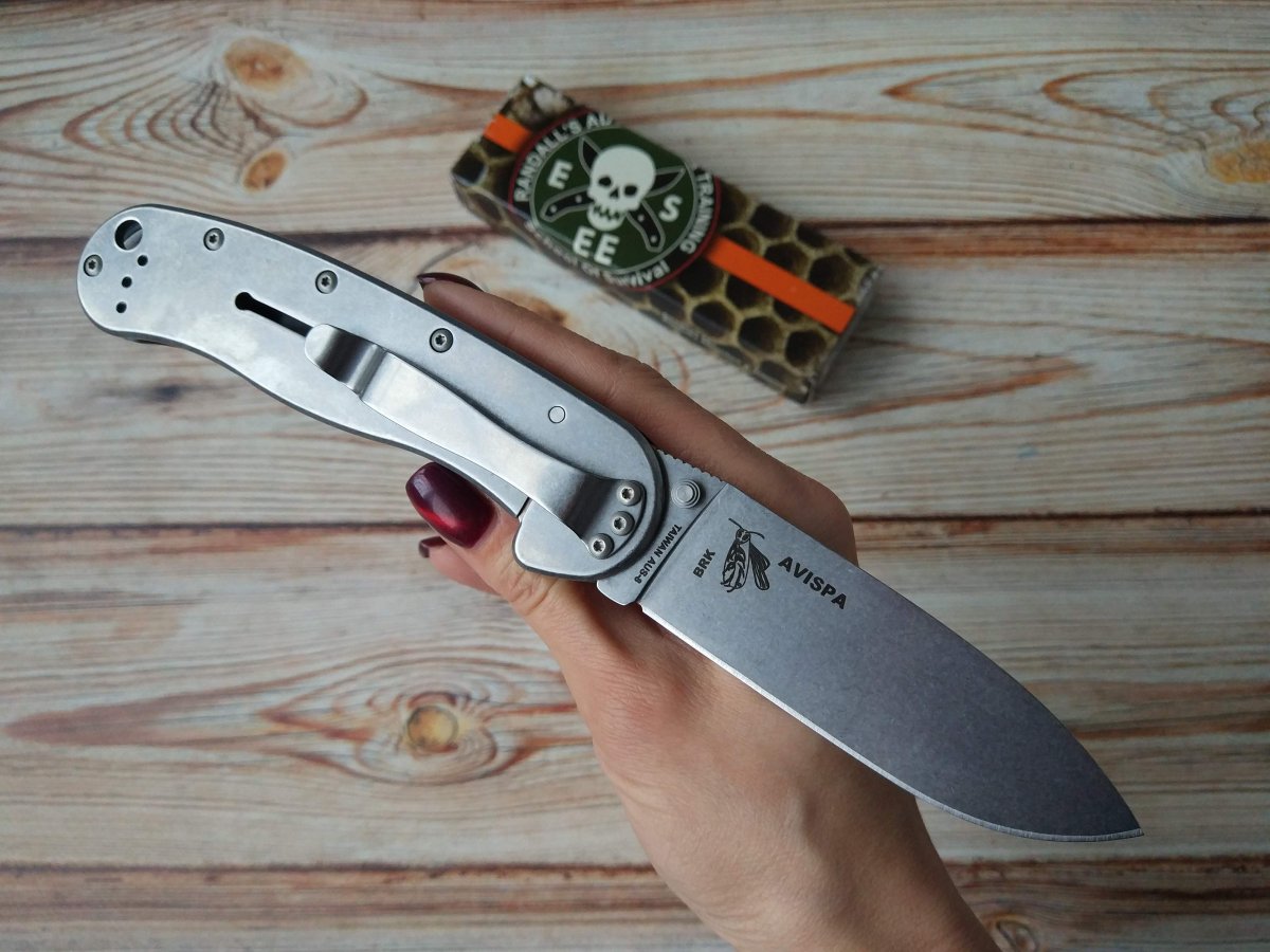 Предлагаю складной нож от компании ESEE. Модель Avispa Black (BRK1301). Оригинал. Avispa в переводе с испанского — оса. Мирное и работящее создание, но если придётся – то ужалит больно!) Складной нож ESEE Avispa ("Оса") – разработан известными найфмейкерами Майком Перрином (Mike Perrin) и Джефом Рэндаллом (Jeff Randall) – создателями Ontario RAT 1 и ESEE Zancudo. Также в разработке участвовал и хозяин Knifeworks - Роджер Клонч, о чем он пишет у себя на сайте: «Интересно Вам или нет, но все наши проекты всегда были направлены на создание надежного и полезного инструмента, и эти модели складных ножей (ESEE Zancudo и ESEE Avispa) показывают результат наших усилий. Плюс отличная, невысокая цена." (с) ESEE Avispa – это второй складной нож известный и продаваемый именно под маркой компании ESEE. Хотя на самом деле производство этой модели было размещено у компании Blue Ridge Knives (BRK). И фактически модель имеет двойную маркировку и название «Avispa» и «BRK1301». Несмотря на «всю запутанность» создания и производства - нож вышел очень приятным. Да и при такой «компании» разработчиков и не могло быть иначе J. Клинок ESEE Avispa изготовлен из нержавеющей стали AUS-8 (8A), производства японской компании Aichi Steel. Повышенное содержание углерода и хрома в составе делает сталь твердой и стойкой к коррозии, а режущей кромке придает податливость к затачиванию и способность долго удерживать остроту. Спуски от обуха и продуманный профиль придают ножу отменную режущую и проникающую способность. Рукоять открытого типа состоит из прочной стальной «рамы» и цветной текстурированной накладки на одной из сторон (материал настолько хорошо подобран и обработан, что на многих сайтах указано, что это G10, хотя на самом деле это FRN). Замок — классический стальной фрейм-лок. Клипса на рукояти переставляется в четыре положения, что позволит каждому найти удобное для себя. Клипса средней жесткости, хорошо сидит на джинсах и другой рабочей или повседневной одежде. Так же имеется отверстие под темляк. Несколько видео, для наглядности: Разнообразных видео, обзоров и тестов по этой модели в сети очень много, желающие могут дополнительно поискать-посмотреть. Характеристики, заявленные производителем: Длина клинка: 88,9 мм. Общая длина: 215,9 мм. Толщина клинка (мах): 3,0 мм. Материал клинка: AUS-8 (8A). Твердость: 57-58 HRC. Тип клинка: Drop Point Flat Ground. Материал накладки рукояти: FRN (армированный стекловолокном нейлон), Black. Механизм фиксации: Frame lock. Клипса: Съемная, четыре положения. Финишная обработка клинка: Stonewash. Вес: 126 г. Упаковка: Фирменная коробка. Производитель: Blue Ridge Knives (BRK). Разработчик: School Of Survival ESEE and Randall's Adventure & Training Страна поставщик: США. Страна изготовления: Тайвань. Нет в наличии. Стоимость: грн. Резервы в темке, вопросы, пожелания - в личку. Фото: В другие города отправляю Новой Почтой или Джастин (оплата за доставку при получении, по тарифам перевозчика). Оплата на карту (Приват банк или Монобанк). Смотрите и другие мои темки о продаже: https://reibert.info/search/member?user_id=98289&content=thread