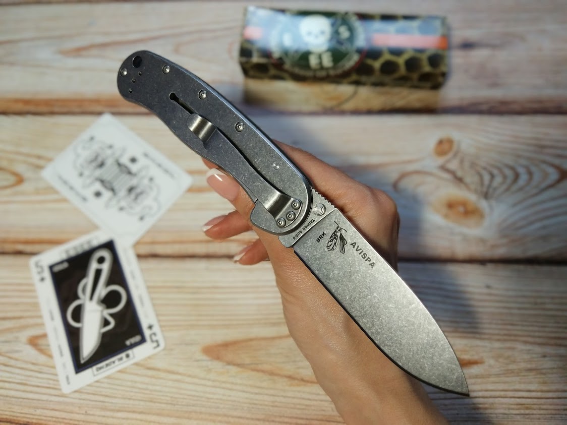 Предлагаю складной нож от компании ESEE. Модель Avispa (BRK1301FG). Оригинал. Avispa в переводе с испанского — оса. Мирное и работящее создание, но если придётся – то ужалит больно!) Складной нож ESEE Avispa ("Оса") – разработан известными найфмейкерами Майком Перрином (Mike Perrin) и Джефом Рэндаллом (Jeff Randall) – создателями Ontario RAT 1 и ESEE Zancudo. Также в разработке участвовал и хозяин Knifeworks - Роджер Клонч, о чем он пишет у себя на сайте: «Интересно Вам или нет, но все наши проекты всегда были направлены на создание надежного и полезного инструмента, и эти модели складных ножей (ESEE Zancudo и ESEE Avispa) показывают результат наших усилий. Плюс отличная, невысокая цена." (с) ESEE Avispa – это второй складной нож известный и продаваемый именно под маркой компании ESEE. Хотя на самом деле производство этой модели было размещено у компании Blue Ridge Knives (BRK). И фактически модель имеет двойную маркировку и название «Avispa» и «BRK1301». Несмотря на «всю запутанность» создания и производства - нож вышел очень приятным. Да и при такой «компании» разработчиков и не могло быть иначе J. Клинок ESEE Avispa изготовлен из нержавеющей стали AUS-8 (8A), производства японской компании Aichi Steel. Повышенное содержание углерода и хрома в составе делает сталь твердой и стойкой к коррозии, а режущей кромке придает податливость к затачиванию и способность долго удерживать остроту. Спуски от обуха и продуманный профиль придают ножу отменную режущую и проникающую способность. Рукоять открытого типа состоит из прочной стальной «рамы» и цветной текстурированной накладки на одной из сторон (материал настолько хорошо подобран и обработан, что на многих сайтах указано, что это G10, хотя на самом деле это FRN). Замок — классический стальной фрейм-лок. Клипса на рукояти переставляется в четыре положения, что позволит каждому найти удобное для себя. Клипса средней жесткости, хорошо сидит на джинсах и другой рабочей или повседневной одежде. Так же имеется отверстие под темляк. Несколько видео, для наглядности: Разнообразных видео, обзоров и тестов по этой модели в сети очень много, желающие могут дополнительно поискать-посмотреть. Характеристики, заявленные производителем: Длина клинка: 88,9 мм. Общая длина: 215,9 мм. Толщина клинка (мах): 3,0 мм. Материал клинка: AUS-8 (8A). Твердость: 57-58 HRC. Тип клинка: Drop Point Flat Ground. Материал накладки рукояти: FRN (армированный стекловолокном нейлон) Механизм фиксации: Frame lock. Клипса: съемная, четыре положения. Финишная обработка клинка: Stonewash. Вес: 126 г. Упаковка: фирменная коробка. Производитель: Blue Ridge Knives (BRK). Разработчик: School Of Survival ESEE and Randall's Adventure & Training Страна поставщик: США. Страна изготовления: Тайвань. Нет в наличии. Стоимость: грн. Резервы в темке, вопросы, пожелания - в личку. Фото: В другие города отправляю Новой Почтой (оплата за доставку при получении, по тарифам перевозчика). Оплата на карту Приват банка.