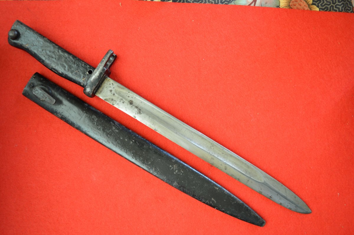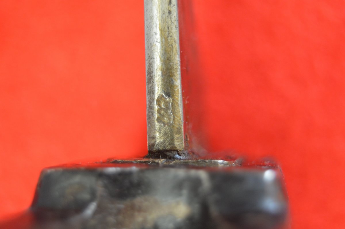 ASG88/98 realnoje germanskoje nazvanie vo vremja vojny, EB9 ili net etot prosto delo Cartera i pered nim belgijskovo kollektora. Styk vozmozno nadevat na 2 vintovky Gew.88 s kolcom 17,4mm i na Gew.98 bez kolca. Dlinka klinka dolzna byt 310mm kak predpolozitelno, okoncanie umenseno, no sostojanie chorosoje posle 100 let. Vopros sto cernaja kraska originalnaja i perioda? Poka znat stamp na obuche klinka, to vozmozno desifrirovat prijemku klinka.No eto byvajet tjazelo. s uv.Andy