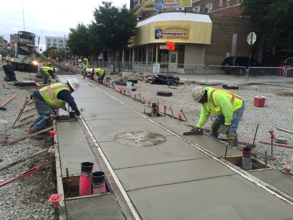Детройт, кстати, начал оживать. Вот свободные американцы и члены профсоюза за строительством трамвайных путей.
