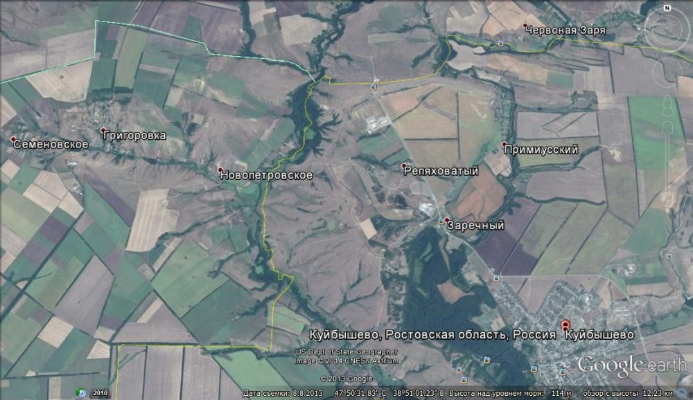 Я только за! Приезжайте,будем рады, всё покажем на месте! Вот по гугл планета- в поиск Куйбышево Ростовской обл, левее выше искомая Григоровка,пример первое фото. Второе - расположение мемориала, третье направление прорыва. 1 остатки Елизаветовки, 2 то что в ОБД значится по потерям -1 км юго-западнее Елизаветинского.