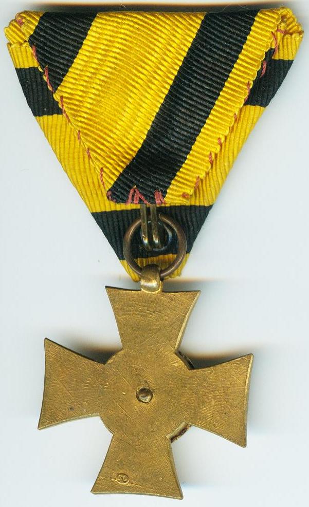За долгую службу 3-класса 19 сентября 1849 г. была введена награда для унтер-офицеров и солдат. Это был нагрудный бронзовый (в отличии от офицерского знака незолоченный) крест, повторявший своей формой австрийский Орден Леопольда, который носили на желтой ленте с черными полосками по краям. Как и офицерская выслуга, этот нагрудный знак для нижних чинов был тоже учрежден в двух степенях: 1-го класса за 8 лет беспорочной службы с бронзовым медальоном с широким гуртом и римской цифрой «VIII» и 2-го класса за 16 лет с серебряной накладкой-медальоном с римской цифрой «XVI» в обрамлении дубового венка. В 1867 г., в связи с коренными реформами военной службы после проигранной Австро-прусской войны 1866 г. было принято решение поднять планку для знака 1-го класса до 12 лет выслуги, а для 2-го — до 18, что вызвало соответствующие изменения в дизайне знаков. В это же время колодки наград стали знакомой нам треугольной формы. Но уже спустя 2 года была проведена новая реформа — планка выслуги для знака 2-го класса была поднята до 24 лет, что, опять таки, привело к изменению в дизайне. В 1890 г. наименование степеней поменяли — теперь старший за 24 года именовался «1-го класса», а за 12 лет — «2-го». В 1911 году добавили еще одну степень — «3-го класса» за 6 лет беспорочной службы. И, наконец, накануне Первой мировой войны, в 1913 г. было принято решение выдавать первую степень за 20 лет выслуги, вторую — за 10 (медальон серебряный, но без венка) и третью по-прежнему за 6. Во второй половине войны, вместе с пришедшим экономическим кризисом и нехваткой металлов нагрудные знаки начали штамповать не из оригинальных материалов, прописанных в регламентах, а из цинкового сплава.