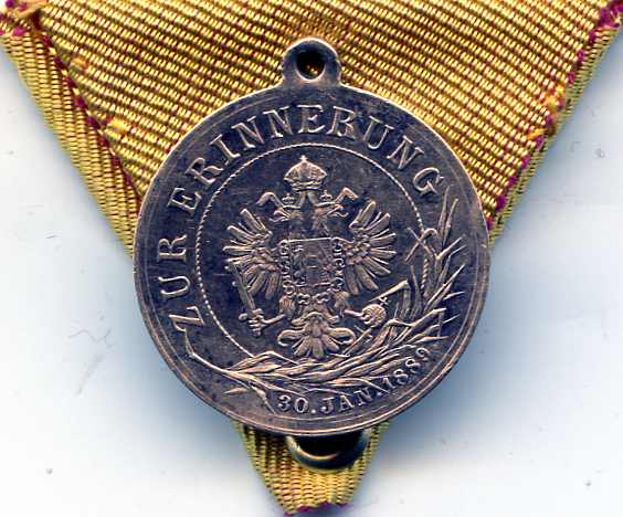 Жетон посвященный смерти наследника престола Тема для детектива . 30 января 1889 в замке Майерлинг были найдены трупы кронпринца Рудольфа и его любовницы — юной баронессы Марии фон Вечера, против отношений которой с сыном выступал Франц Иосиф. Трагедия остаётся загадочной до настоящего времени; наиболее распространена версия, согласно которой Рудольф застрелился, а Мария либо также покончила с собой, либо её убил принц; существует также ряд теорий заговора. Правительство скрыло обстоятельства гибели кронпринца (приписав её несчастному случаю), однако подробности достаточно быстро распространились по Европе. Франца Иосифа это сильно подкосило .
