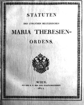 Военный Орден Марии Терезии Militär-Maria Theresien-Orden Орден был учрежден королевой Венгрии и Богемии Марией Терезией в 1757 году в ходе Семилетней войны в честь победы над пруссаками при Колине и предназначался только для награждения военных. Первоначально орден имел 2 степени: Кавалер Большого Креста и Кавалер, но уже 15 октября 1765 г. был разделен на три: Большой, Командорский и РыцарскийКресты. Первым награждённым стал командующий имперскими войсками в битве при Колине фельмаршал Леопольд Йозеф Даун. Орденом Марии-Терезии награждались лица благородного происхождения за многолетнюю воинскую службу, подвиги в бою и полученные ранения. Устав ордена не допускает, чтобы при ношении его знака рядом с ним соседствовали иностранные ордена. Не допускалось награждение иностранцев не состоящих на службе в императорской армии(однако, это требование соблюдалось не всегда). Рыцарский крест Военного ордена Марии Терезии Командорский крест Военного ордена Марии Терезии Черезплечная лента и нагрудная звезда командорского креста Военного ордена Марии Терезии Статут Ордена