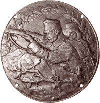 Отличный снайпер Feldscharfschützenauszeichnung Отличие появилось в 1917 году для общей армии, ланвера и гонведа. Документов о его учреждении не найдено и вполне возможно, что оно появилось неофициально, как ответ на отмену с 1914 года награждений аксельбантами снайперов Интересно, что в австро-венгерской армии так и не была разработана снайперская винтовка — с одной стороны то, что затвор в системе Манлихера двигался только в горизонтальной плоскости, не мешало установке специального прицельного приспособления (например — оптического прицела), а это не препятствовало заряжанию. Но с другой — у системы Манлихера было пачечное заряжание и пачка вставлялась только сверху. Судя по фотографиям, если снайпер пользовался винтовкой с оптическим прицелом, то это было нештатное оружие.