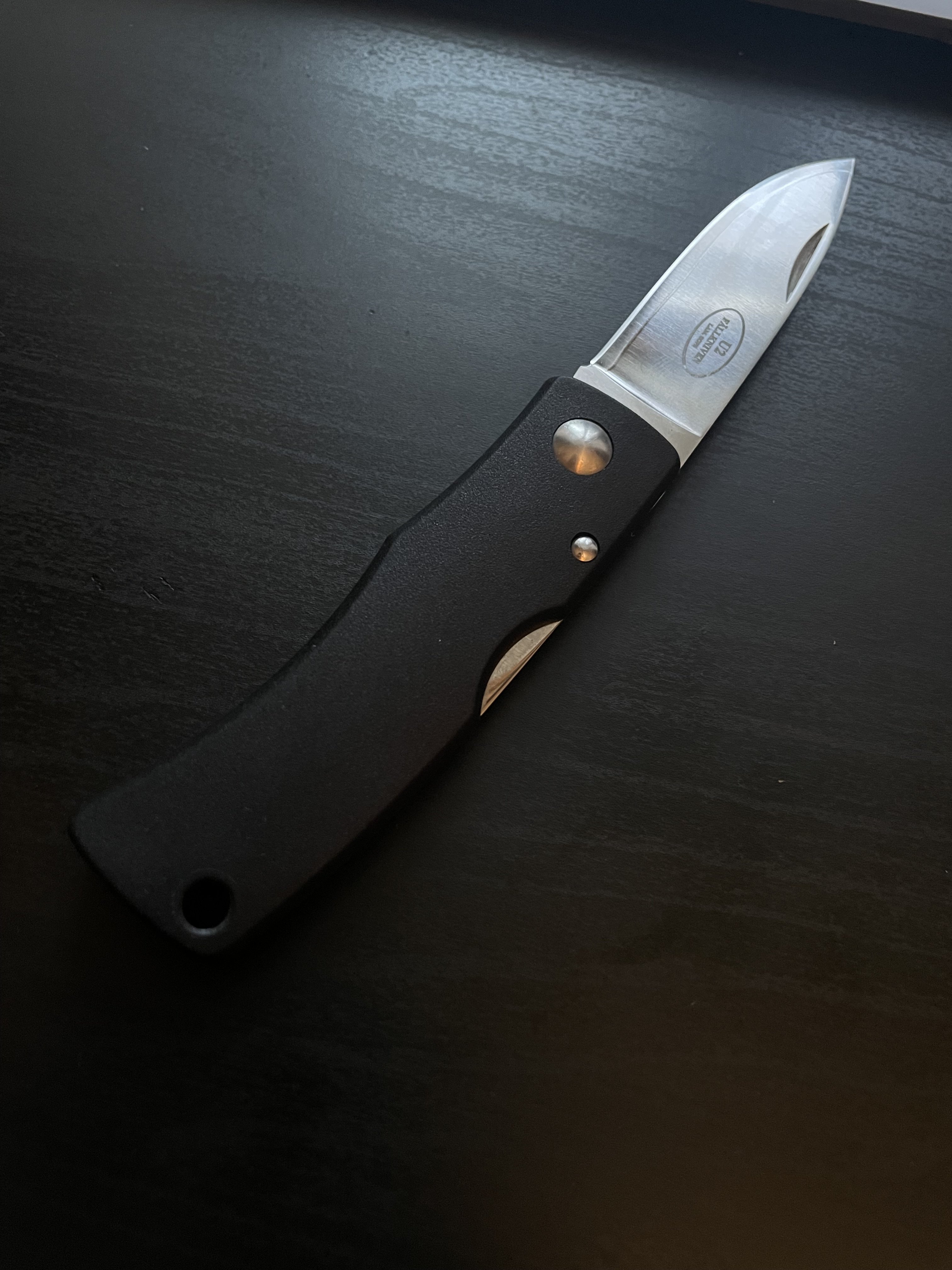 Fallkniven U2 Легке б/в. в комплекті тільки ніж. 65 мм клинок / 60мм рк. Інфо з мережі Серія U2 Folder – це серія складаних шведських ножів найвищого «сорту» сталі. Модель U2 - вперше була випущена в 2004 році, це перший складаний ніж у світі з порошкової сталі з особливо гострим лезом. Клинок прикрашає логотип із написом шведського бренду Fallkniven, маркою сталі та моделлю ножа. На спинці рукояті знаходиться металева кнопка, за допомогою якої складається ніж - Back Lock. Скласти ніж легко однією рукою. Характеристики: Загальна довжина: 150 мм Довжина клинка: 65/60 мм Товщина клинка: 2,5 мм Сталь: Lam.SGPS. Матеріал руків'я: Zytel Вага: 42 гр. Країна виробник: USA Ціна: 4000 грн