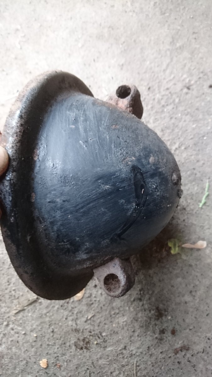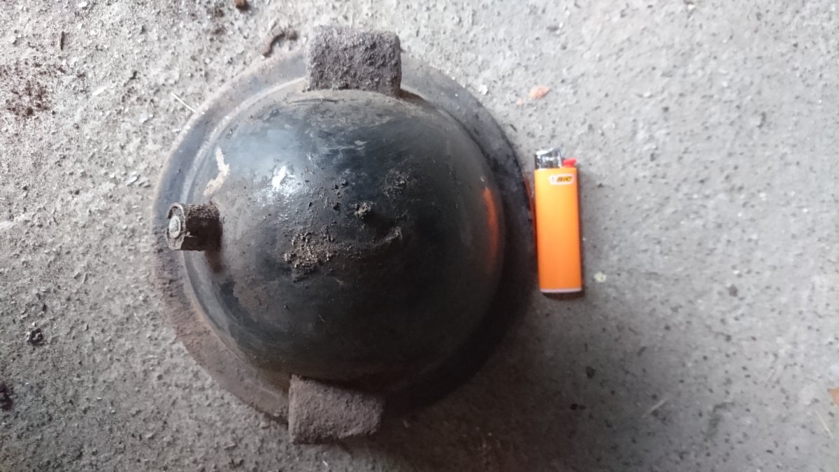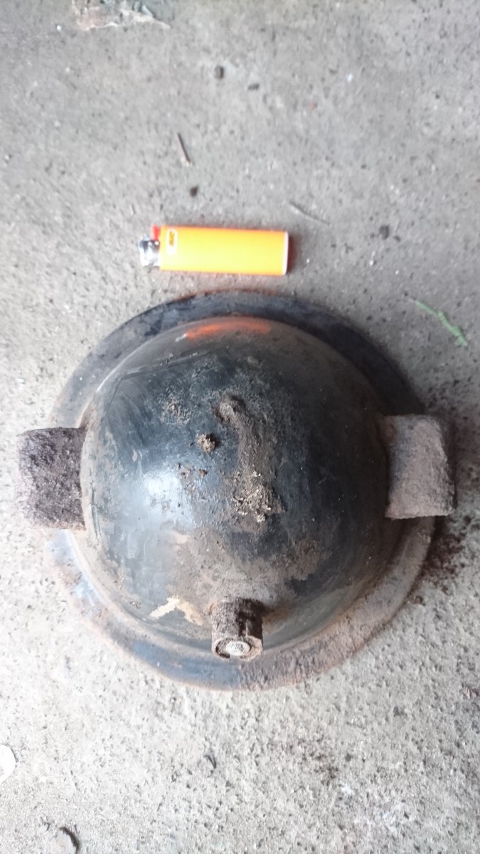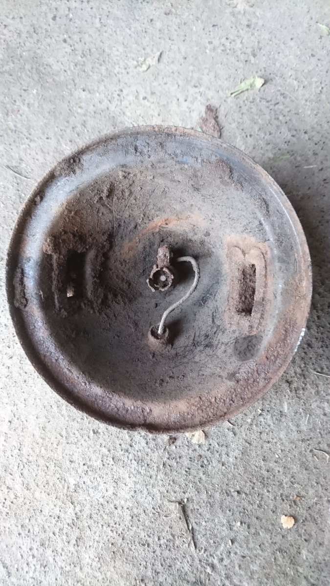 Приветствую всех! Выскочила в лесу на позициях фара. Окрас черный,клейм и надписей не нашел. Есть предположение,что от Сталинца.Кто знает прошу подсказать.