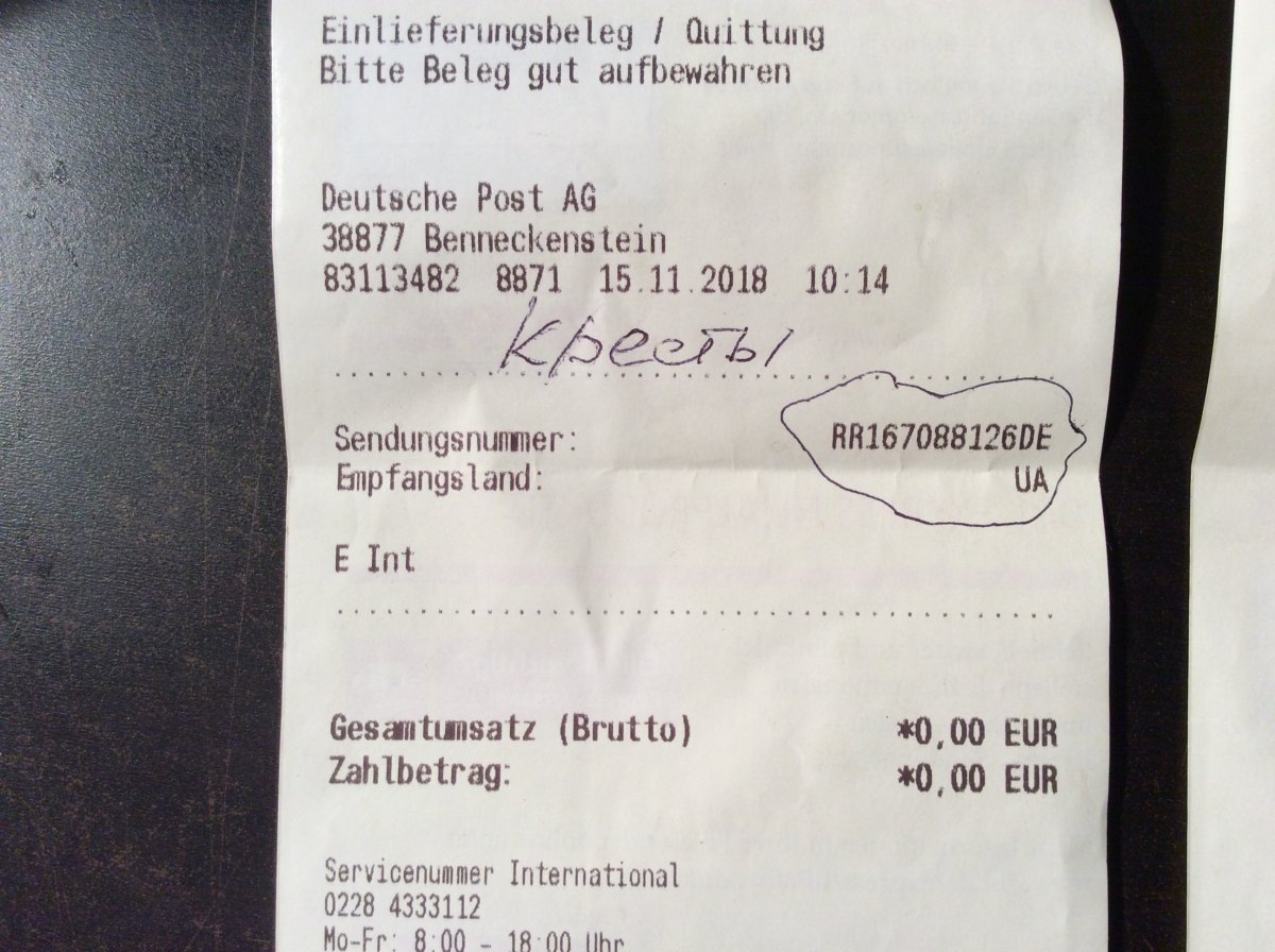 Суть да дело и товарищ захотел приобрести что то из наград которых у меня во множестве. Договорились четыре креста за 200€. Переговоры были примерно месяц. 14.11.2018 он перевёл деньги на платёжную систему Paypal и 15.11.2018 я отправил ему посылку. На чеке номер отслеживания обведён ручкой.