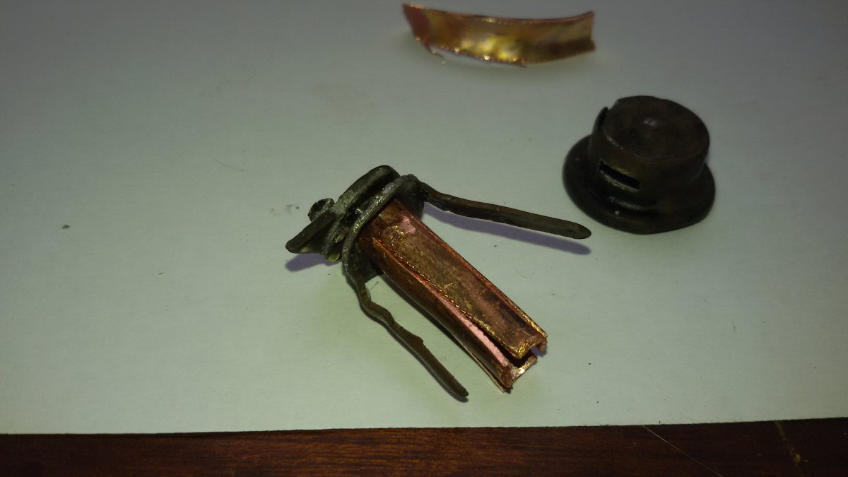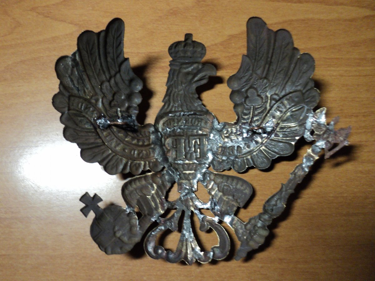 Орла поставил другого, паяный. хвост паялся из 3-х частей, от разных орлов, часть скипетра под маленьким орлом смастерил из кусочка латуни, выстучал как чеканку молоточком и металическим стержнем, затем обработал надфилями до нужной формы.