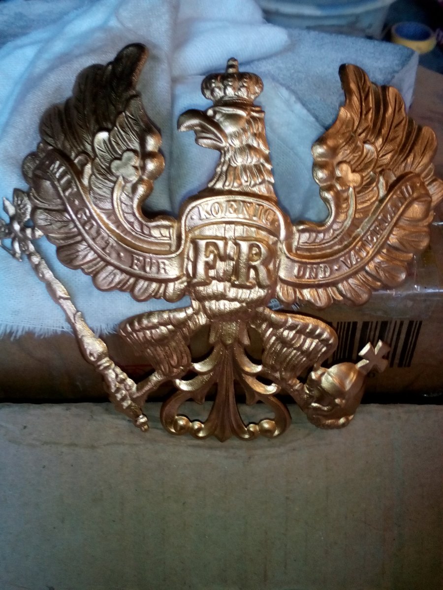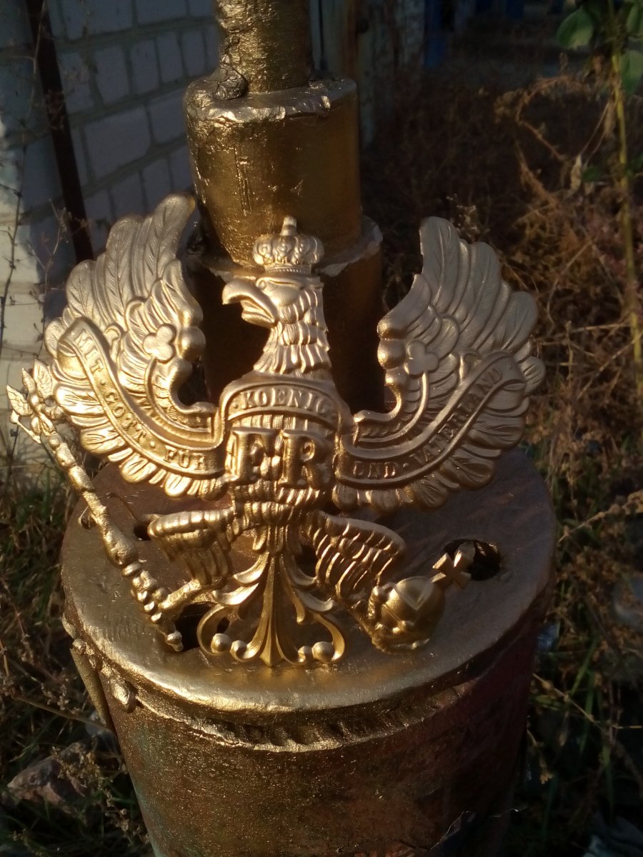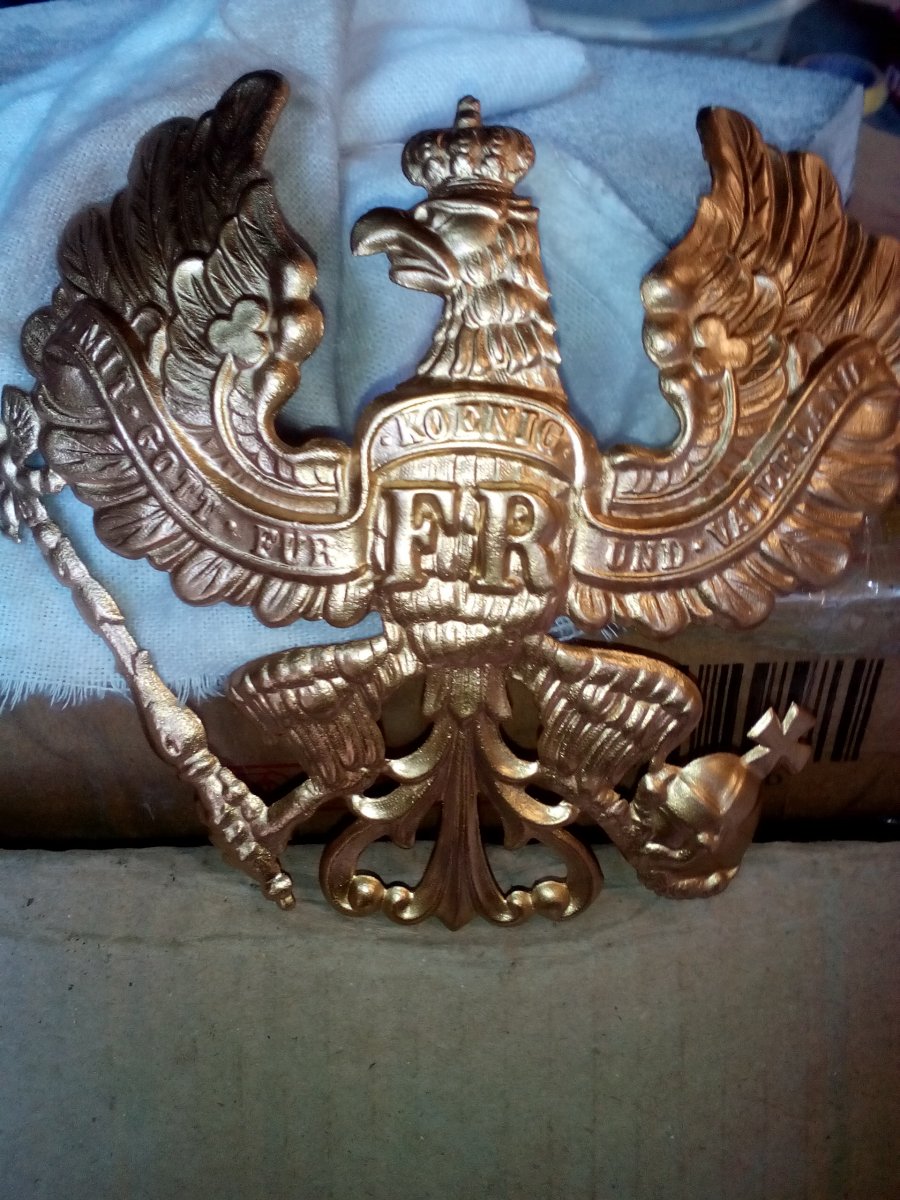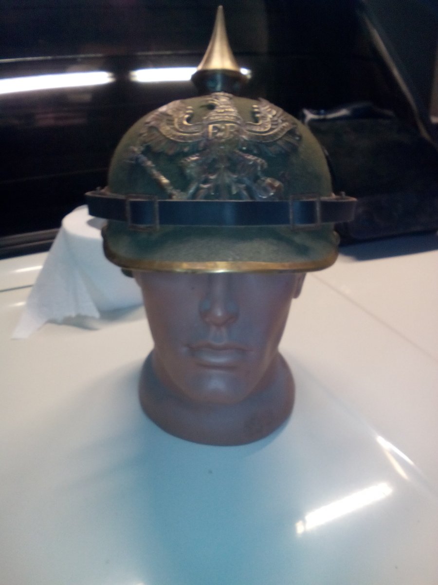 Зробив дирки під кокарду та зробив примірку. Позолотив решти фурнітури просто на шоломі. Ще один крок зроблено. До кінця тижня постараюся доробити все, без ландкокард.