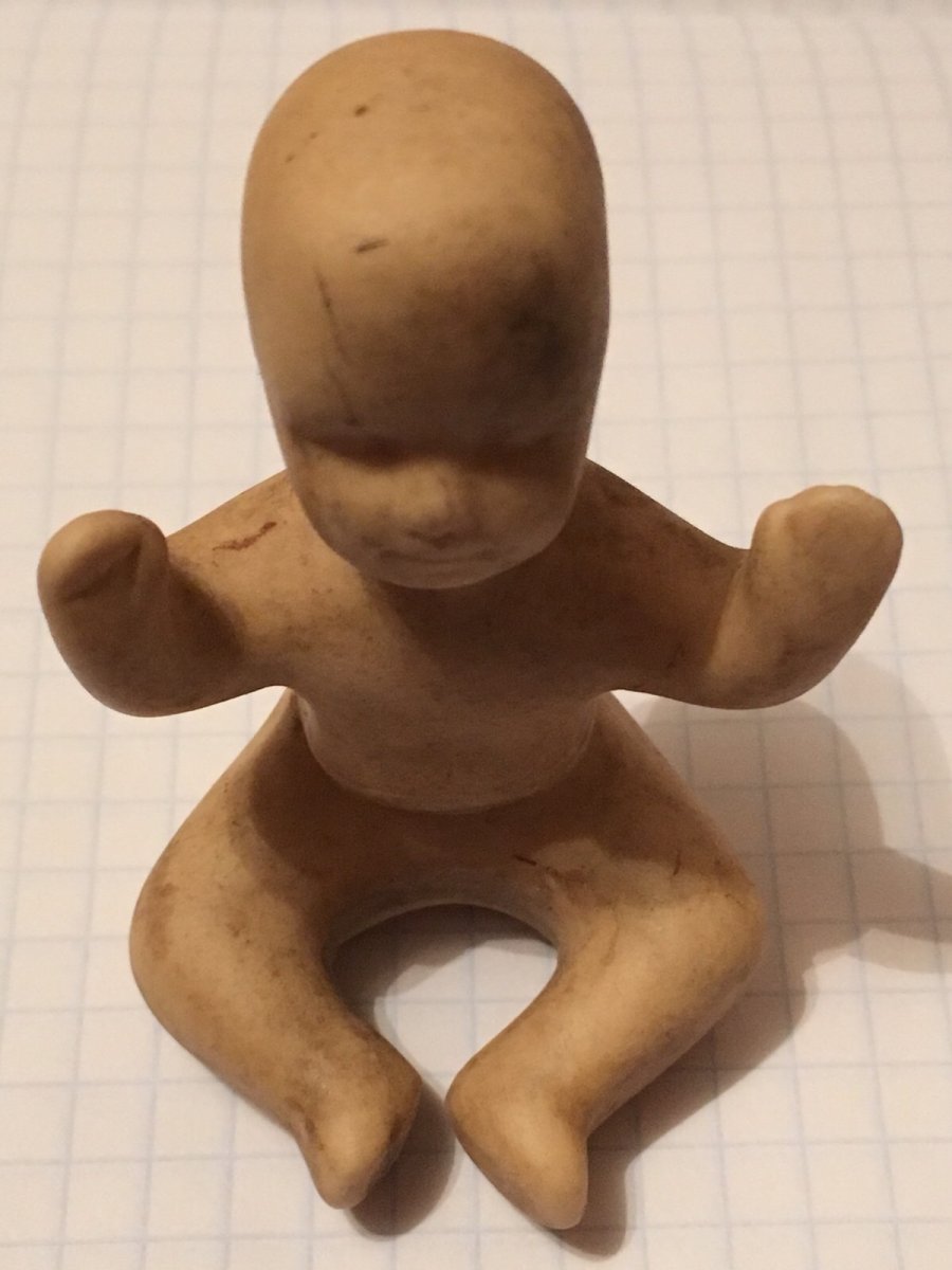 У пупса "черты" лица слишком современные,а кость-очень дорогой материал для подобного произведения...Возможно твердый пластик,из него уже и оружие делают... Найдите более подходящий форум для своей статуи,всё-таки не Александр Македонский в раннем детстве.