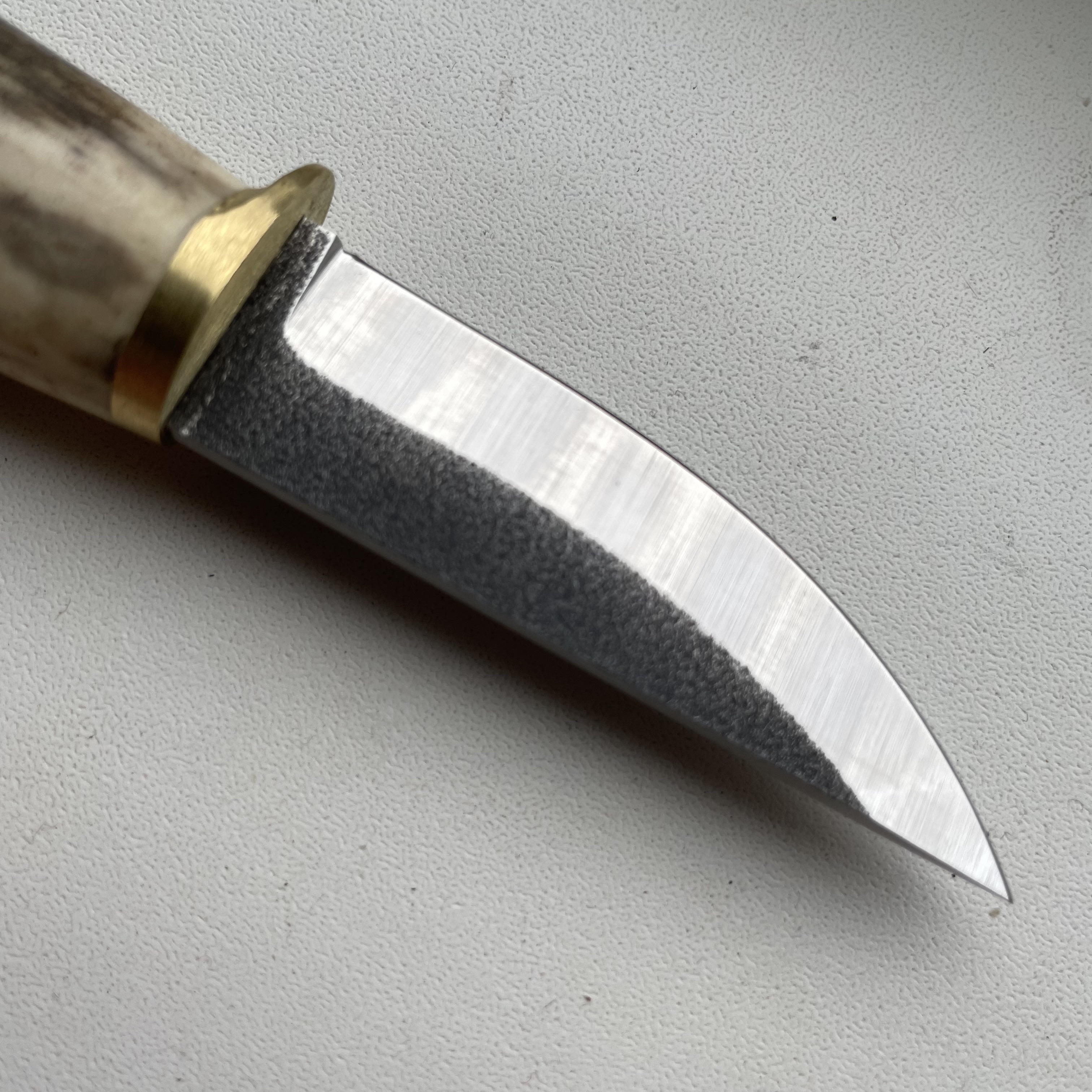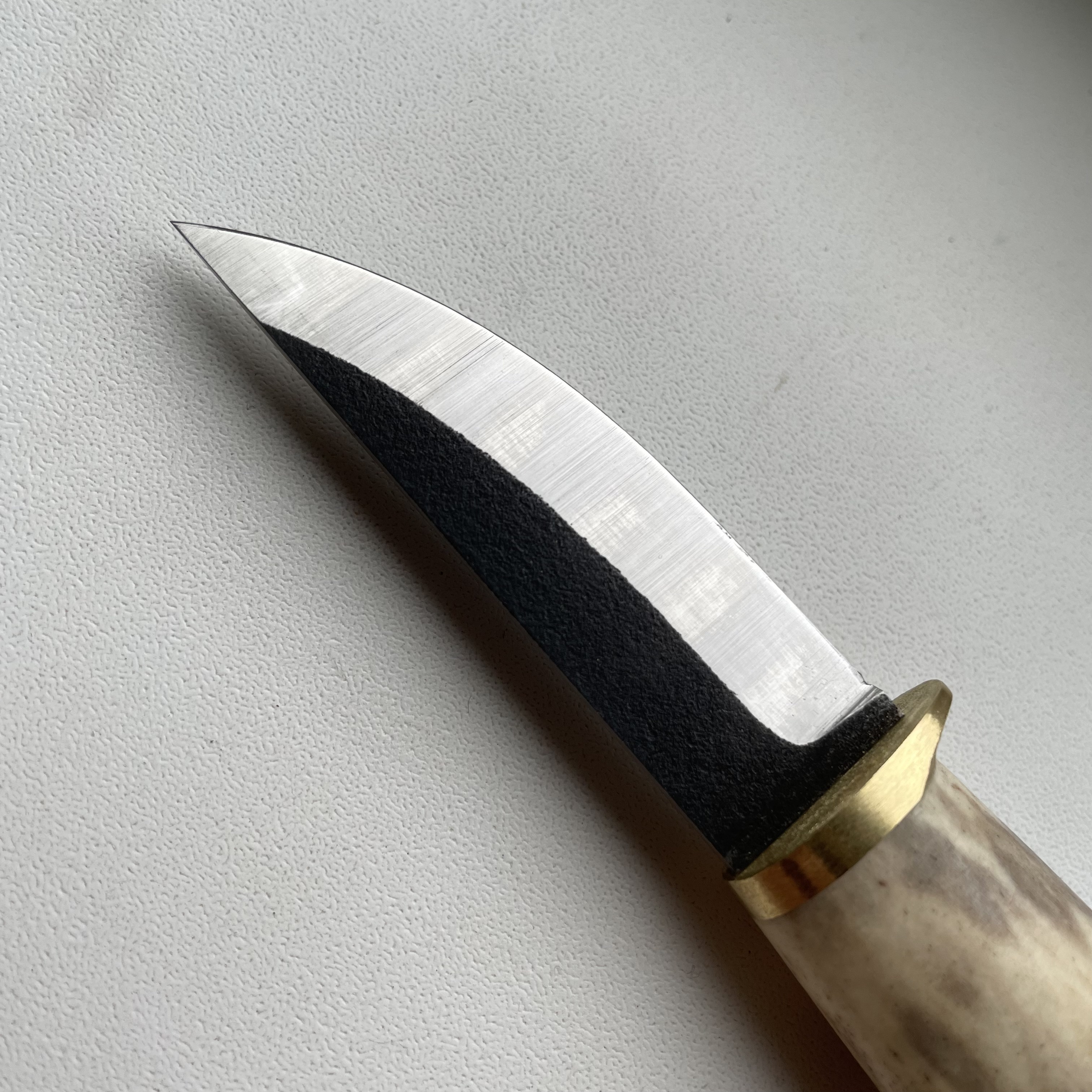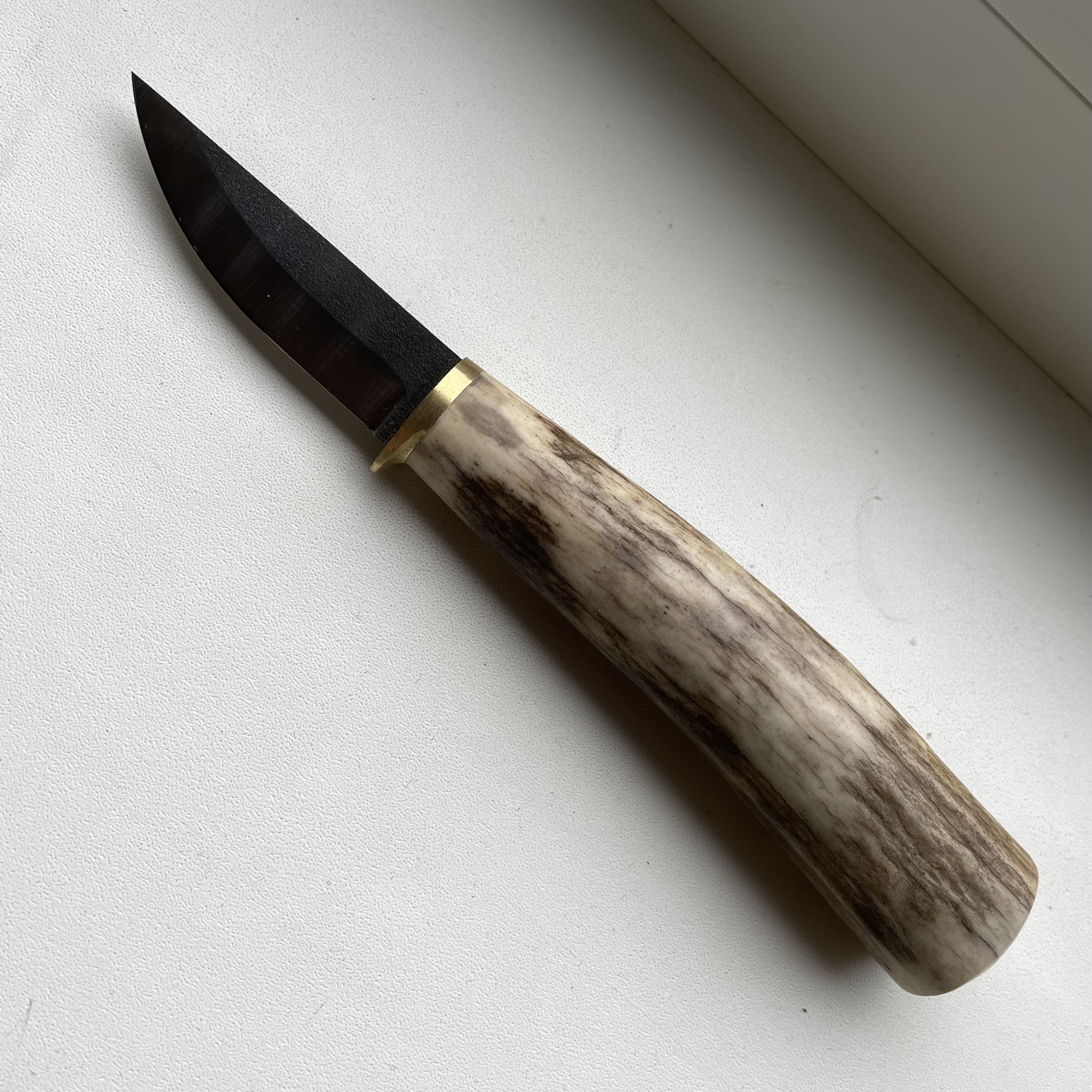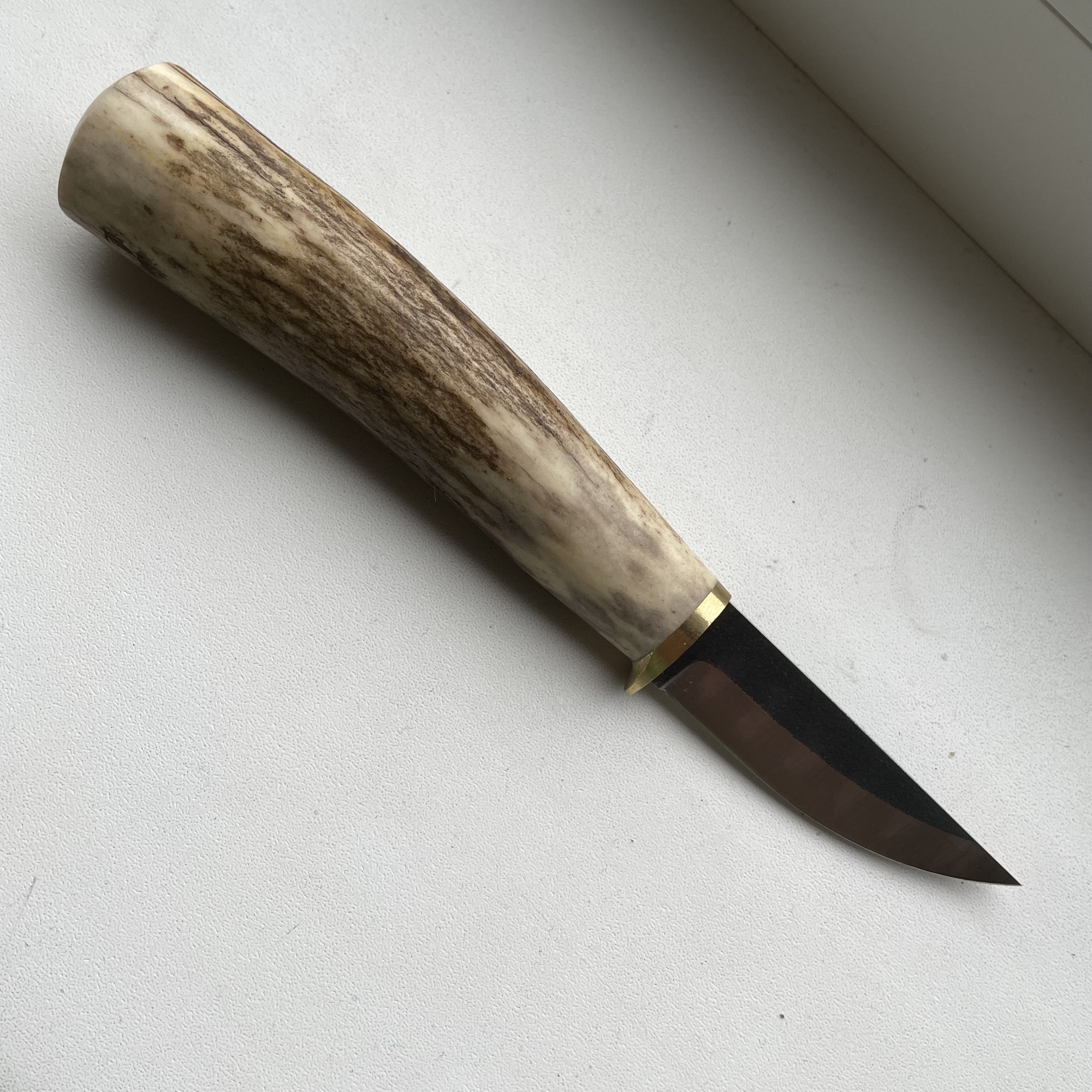 Новий ніж. Лезо (N690) - 55мм х 3мм Руків'я (ріг+латунь) - 103мм Ціна - 1500грн.