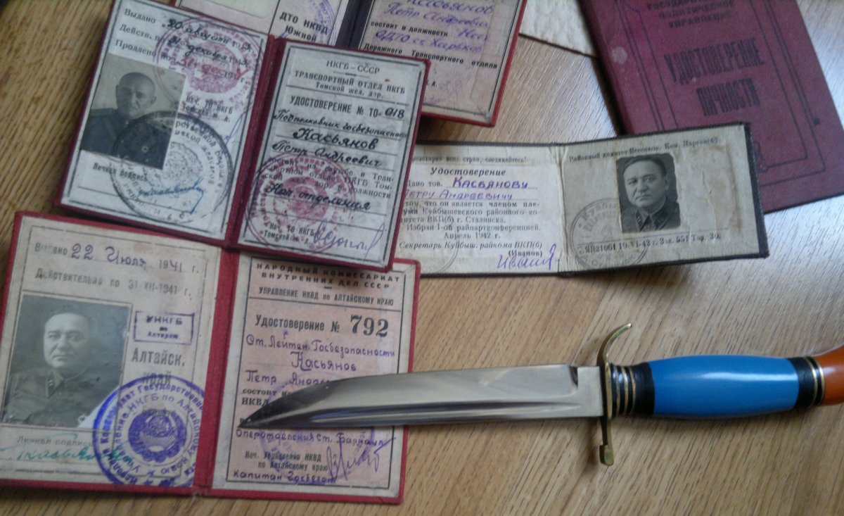 Эти финки, могли быть повсюду... Речь о другом - нет никаких документальных подтверждений, что это холодное оружие состояло на вооружении в НКВД, МГБ, ГРУ и так далее... У милиционеров, должно быть вписано в карточке-заместителе вместе с пистолетом, а у охотников в охотничьем билете вместе с оружием.(Либо должно быть отражено в наградных документах, как наградное оружие). Насколько помню, погран войска, имели непосредственное отношение к НКВД. Погранцы, в таком случае, гипотетически, могли быть награждены такими ножами вместе с милиционерами. ИМХО. Получается предмет есть, а доказательств его принадлежности - нет.