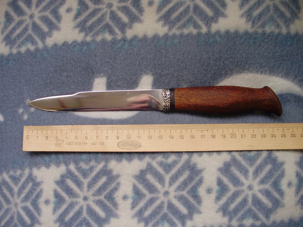 Сталь-Сандвик12С27 длина-135мм ширина-20мм толщина-3мм спуски-конвекс в ноль рукоятка-кожа,дуб ножны-кожа,деревянный вкладыш,свободный подвес цена-650грн