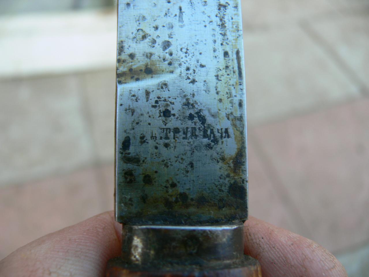 Вот махнул сегодня на складские свт 40(их у меня итак навалом) из расчета 1:1,оставлю себе наверное с патиной уж больно он антуражный и клинок правильный,состояние хорошее,но время свой отпечаток сделало,а запах....словами непередать(кто в теме меня поймет),вот инфу черпнул по клеймам.Вобщем если у кого есть какая инфа по данному предмету или фото бойцов с этим ножем-прошу поделиться.