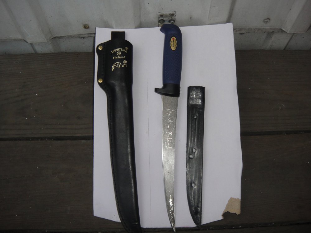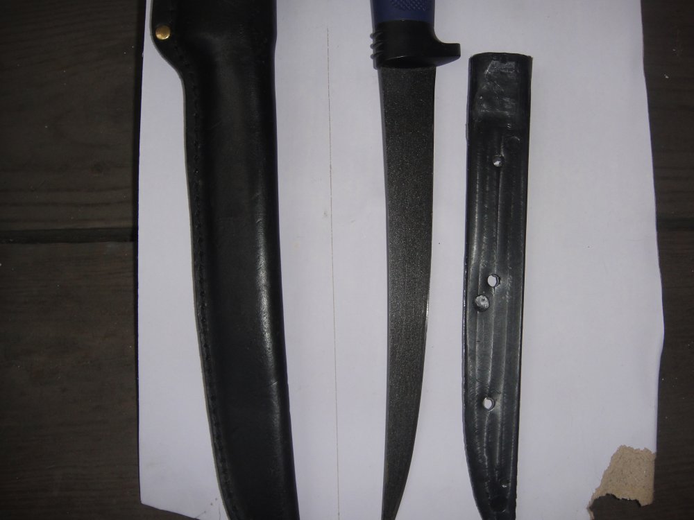 Продам практически новый филейный нож известной фирмы с тефлоновым покрытием.Ножны кожаные с пластиковой вставкой.Цена 450гр.