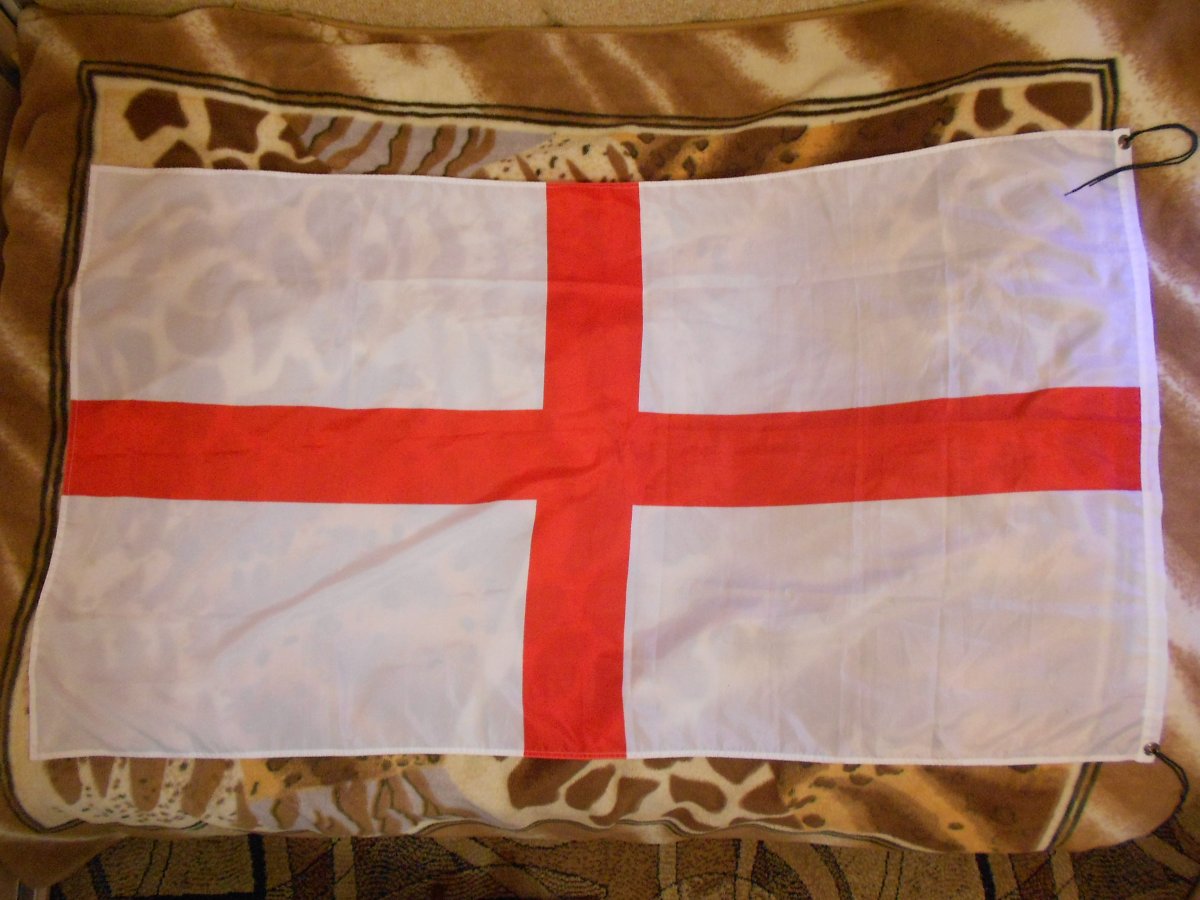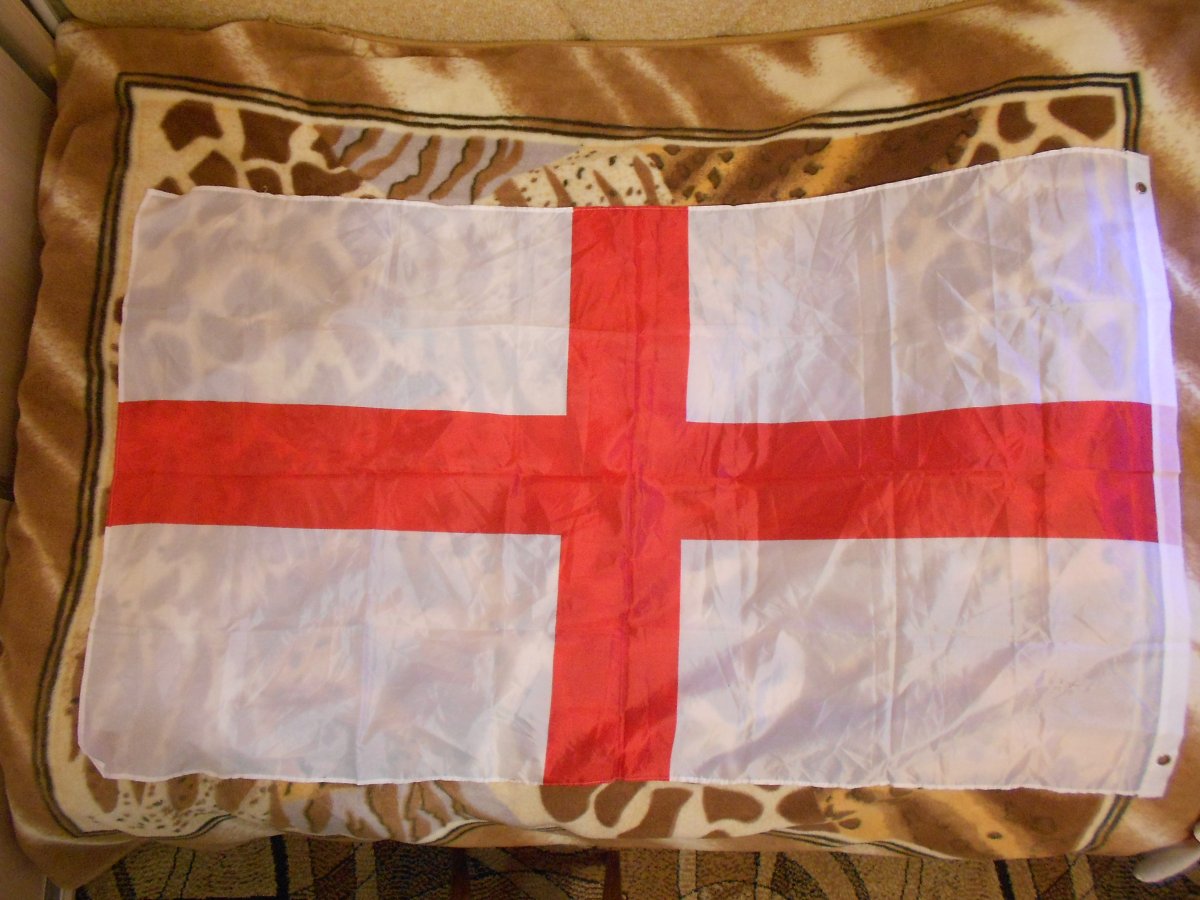 Лот №4 Флаг Англии. Б/У один раз, к люверсам привязаны два шнурка( видно на фото). Полиэстер 100%. Рисунок двухсторонний. Размер 90 см на 150 см. Вопросы и предложения в лиску. Резерв в теме. Цена 220 гр.