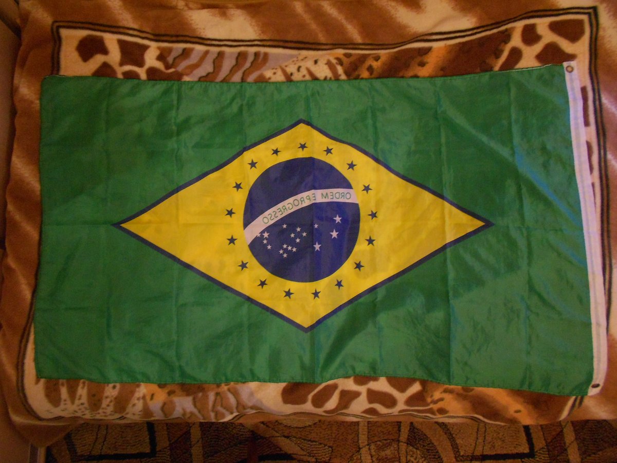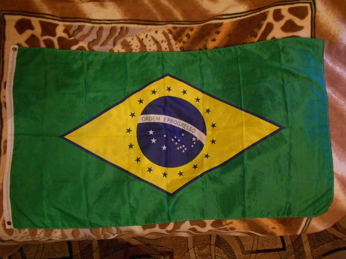 Лот №5 Флаг Бразилии. Б/У два раза, Состояние отличное( видно по фото). Полиэстер 100%. Рисунок двухсторонний. Размер 90 см на 150 см. Вопросы и предложения в лиску. Резерв в теме. Цена 220 гр.