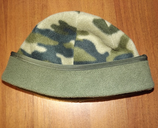 Лот №1. Двусторонний (двухслойный) флис, в камуфляжной расцветке и оливе, состояние новой, отлично сядет на голову от 57 до 60 размера. Информация о производители и материале отсутствует. Цена -85 грн. Продана