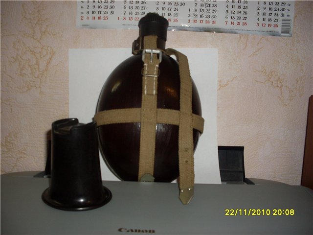 Уважаемые, прошу Вас подсказать по цене. Колба целая, не течет, без запахов, клеймо 1942года. Стакан и крышка бакелитовые - оригинал. Обвес - реплика: пряжки - фляжные алюминиевые, остальная фурнитура (шпеньки, карабин) - реплики. Заранее благодарен.
