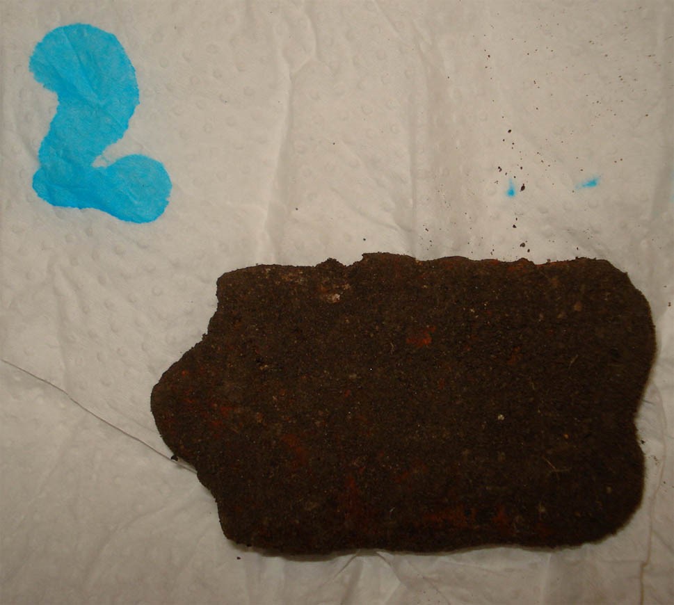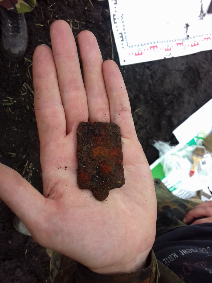 Як і обіцяв, фото підпису фляги. На мою думку видряпано "Мазу", але можливо я не правий? Флягу деформувало плугом. Голова бійця, судячи з усіього, теж буде побита плугом, так як вони лежать на глибині 30 см, при тому, що глибина плуга зазвичай 15-25 см. Тих бійців що були "вище", напевно вже по усьому полі розтаскало. Опис бойових дій 13 ждбр, що був викладений вище, дуже добре підходить під цих бійців, є багато сходжень, але є й деякі географічні розбжності. Про деталі розповім пізніше.