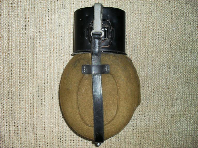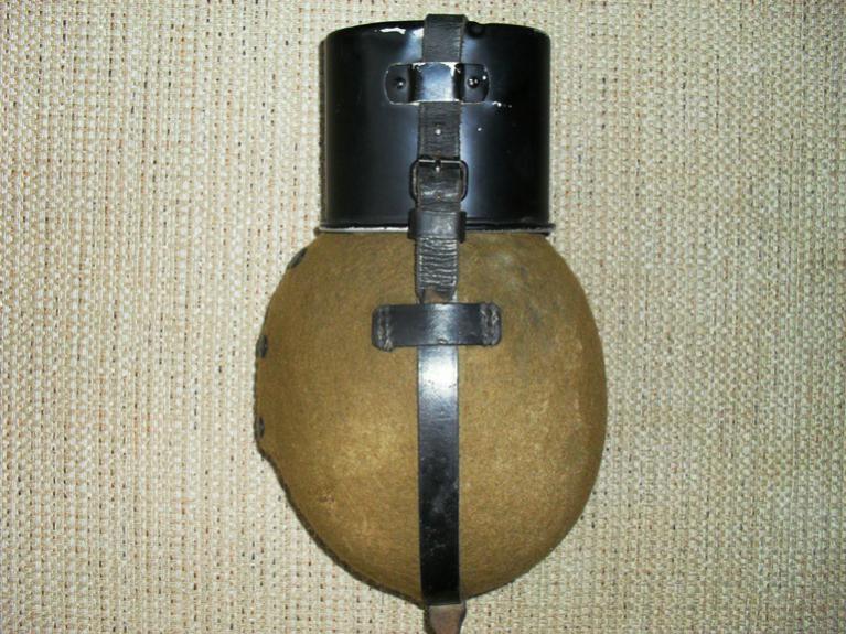 Егерь, объем - 1л. Производитель - RFI 41 (клеймо на колбе и на стакане - RFI 41). Отличное состояние, кожа мягкая, дыр нет, стакан полностью в родной краске. Цена - 140$ c моим пересылом.