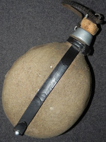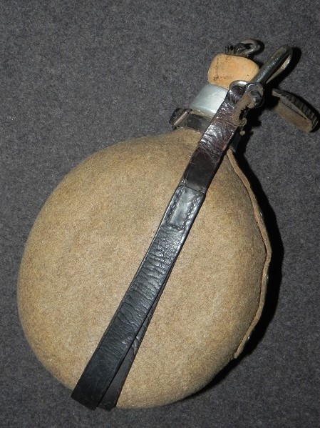 Оригинальная фляга Кайзеровской Армии. Германия. Верхний ремешок (с пряжкой) суховатый, надо разрабатывать. Основной ремень, несмотря на внешний вид, довольно эластичный для столетней фляги, в одном месте надрыв (на фото) Объем - 1 литр. Пробка, судя по всему, самодельная, но сделана еще "тогда". Колба - алюминиевая. Полностью не открывал, поэтому не знаю, клеймена или нет. Кнопки латунные, клейменые, присутствует оригинальный окрас - нормально функционируют. Карабинчик стальной, хромированный, целый, но при нажиме сама не отходит, вероятно, пружина загрязнилась. Можно пользоваться. 80$, не включая расходы по доставке - 10$.