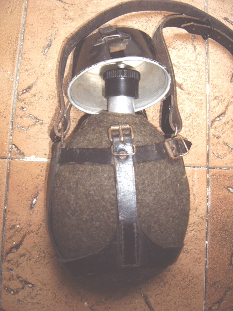 оригинал, увел. объём ок. 1л., клейма на стакане и горловине, чехол в некоторых местах заштопан. исполнение с карабином для горных егерей и парашютистов. 115,-у.е. для информации: исполнение с плечевым ремнём как на последнем скане показывает флягу лабеля для полевых санитаров.