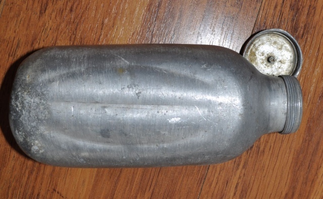 Здравствуйте! Подскажите, пожалуйста, что за фляга/емкость? Клейм нет. Внутри был солидол.