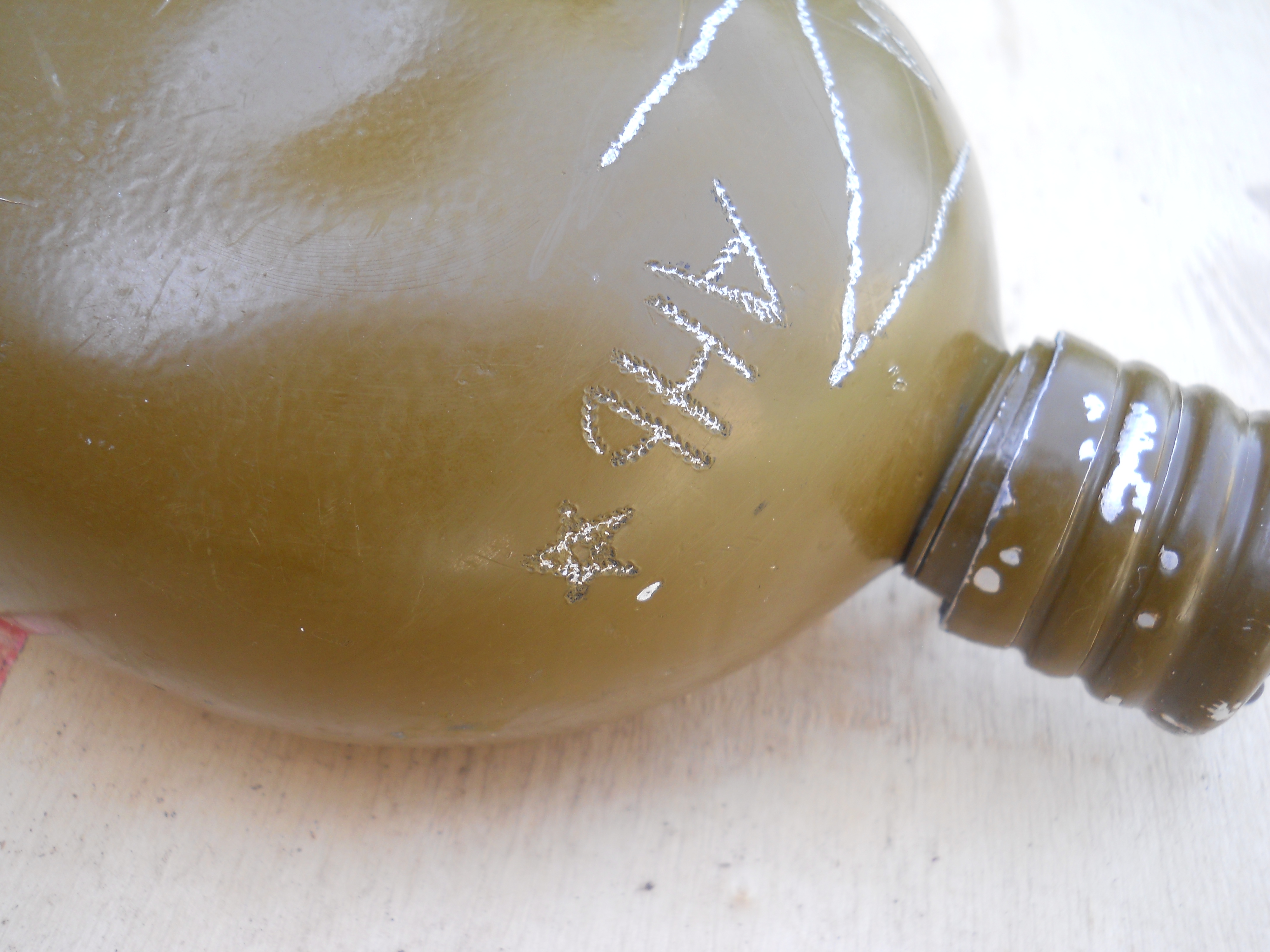 Приветствую . Прислали сувениры наши воины на продажу и среди прочего оказалась такая фляга царапаная когтями . Оно интересно ? Эти кацапские каракули стоят дороже чем обычный их лом ?