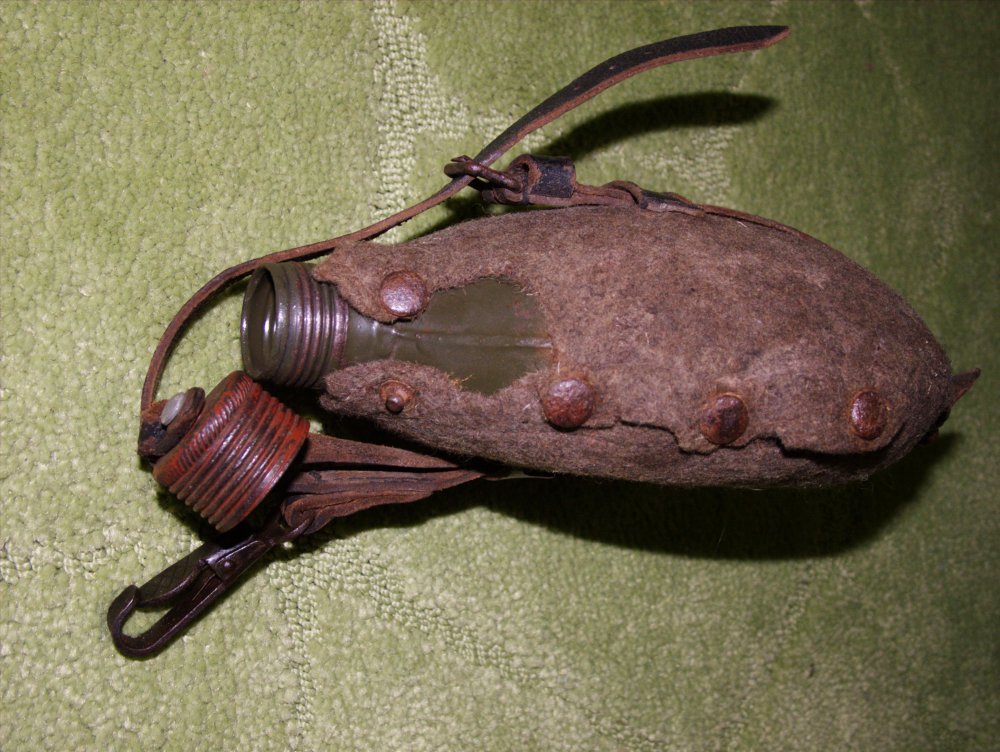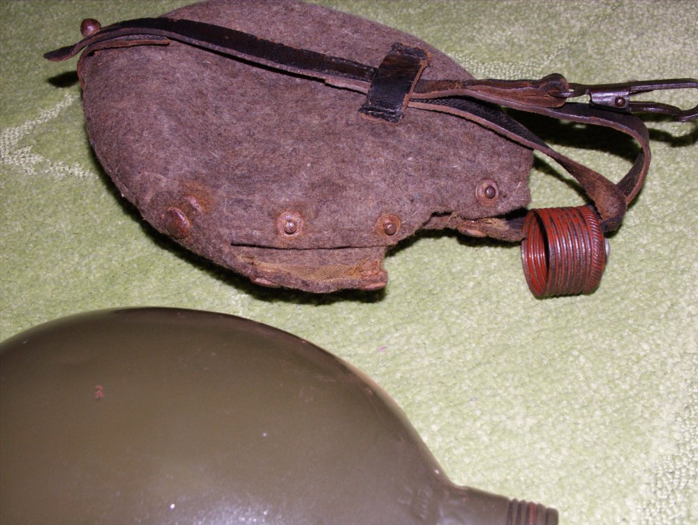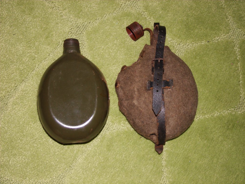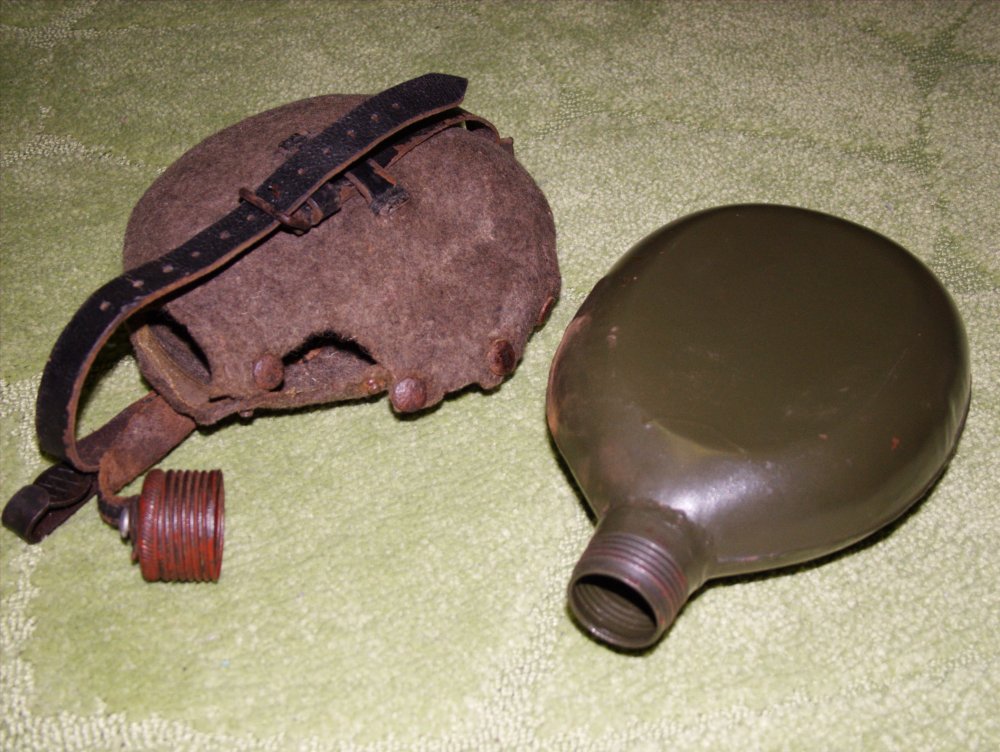 Подскажите пожалуйста по фляге,попадались всегда алюминивые,а сегодня принесли вот такую-железную.Клейм нет.Она имеет отношение к военному периоду или послевойна? Обвес оригинальный? Спасибо.