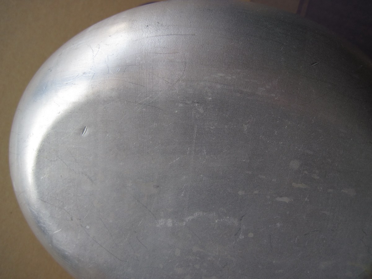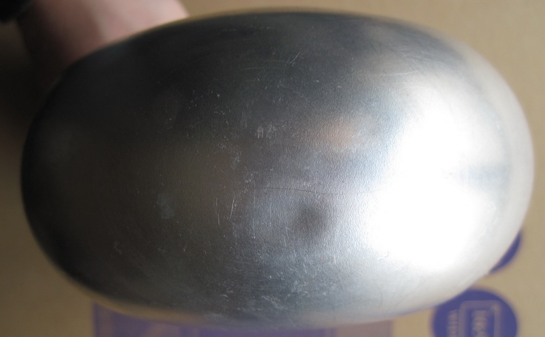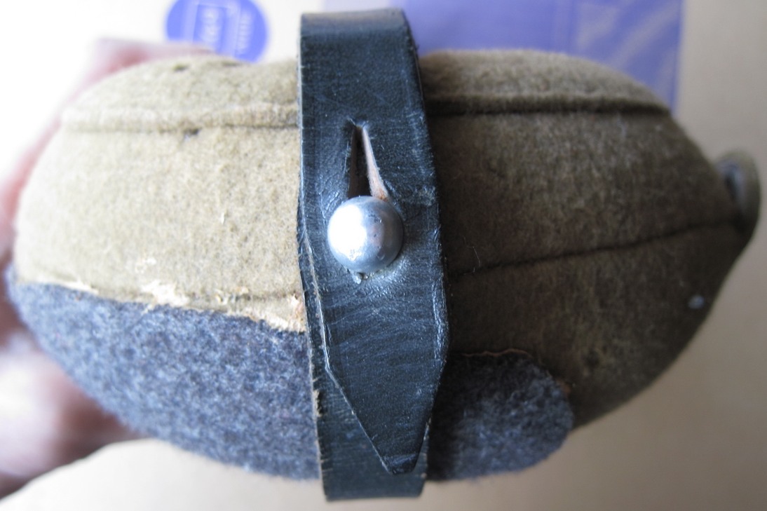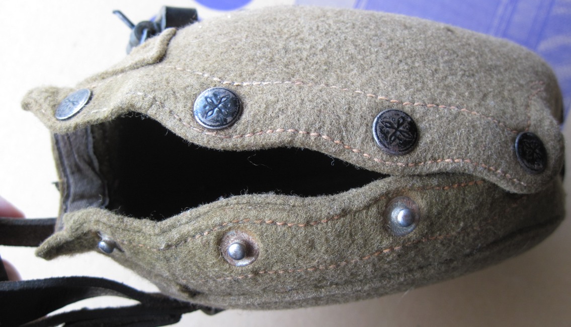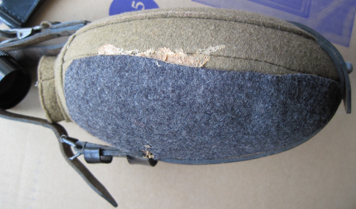 Всем привет. Прошу оценить флягу. На чехле 8 дырок. Еще к нему моментом приклеен кусок ткани, который закрывает большую дыру (на фото есть состояние этой дыры под приклеенной тканью. На самой фляге есть 2 небольшие вмятины (внизу и на ребре) и 2 небольших пореза. Не течёт. На горлышке есть оранжевый налёт - отмыть не смог (наверно от резины на пробке). Изнутри немного воняет резиной от пробки. Бакелитовый стакан с потертостями на ребре и немного возле эмблемы, но в целом выглядит отлично. Стакан не воняет. Хранилось в сумке с охотничьими принадлежностями, так что скорее всего, гадость туда не заливали. Кожа твёрдая. Не знаю, или она сама по себе такая или задубела.