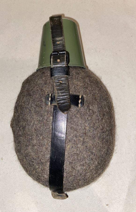 Поздние чехол и фляга армии ГДР. Фляга выполнена по совдеповскому образцу. Отсутствует обвес и серо-зеленый стакан. Ранние чехлы 50-60-тых имели прошив как у вермахта, а не заклепки.