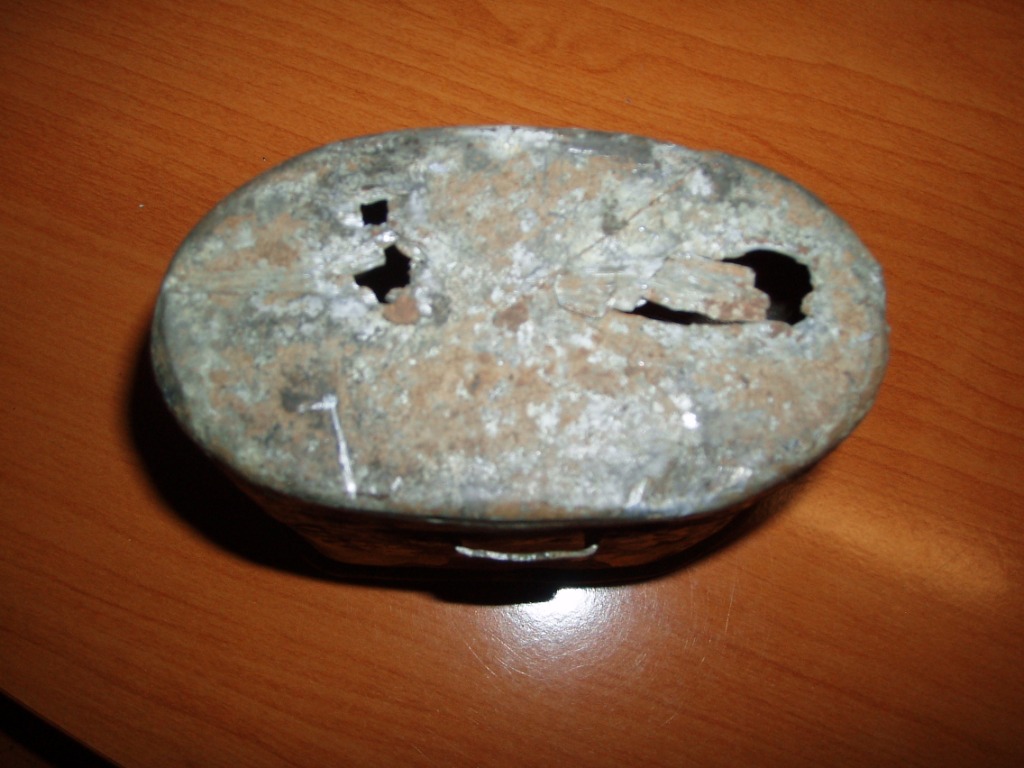 Также здесь на форуме была приобретена фляга 42 года в довольно неплохом состоянии, но с пару вмятинами на дне, которые были выровнены с помощью стального прута, правда внутри немного поцарапалась. Фото до к сожалению не осталось. Чехол чех, нужно еще поменять кнопки на 12мм. или оригинал. На него выточил и установил внизу шпенек, а также пришил шлейки для оплетки.